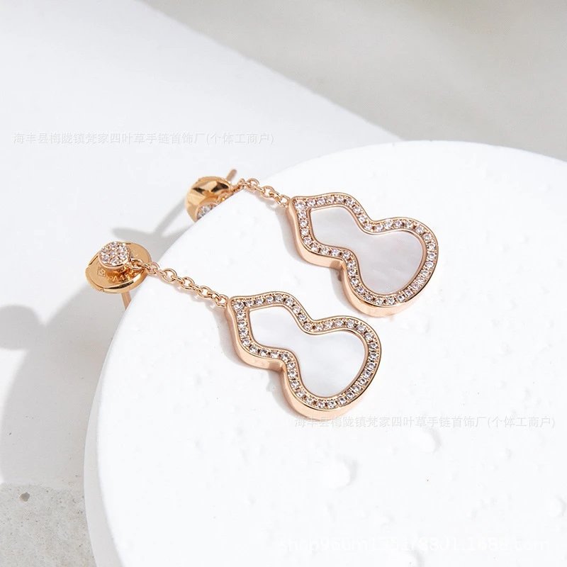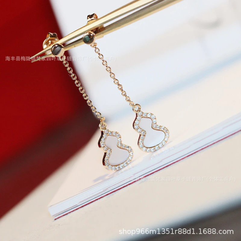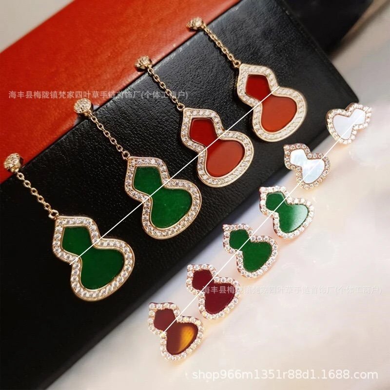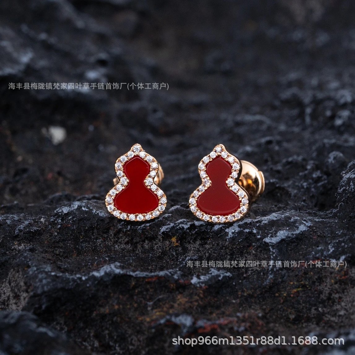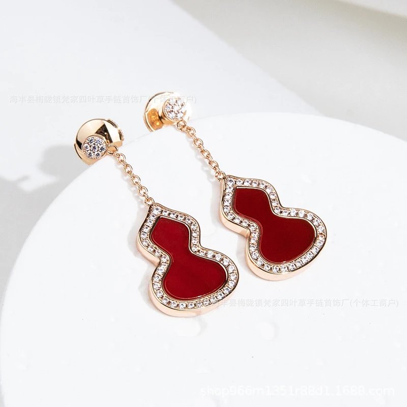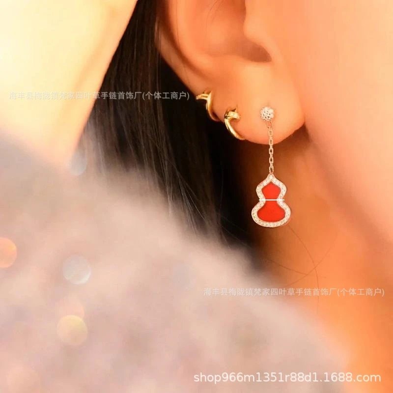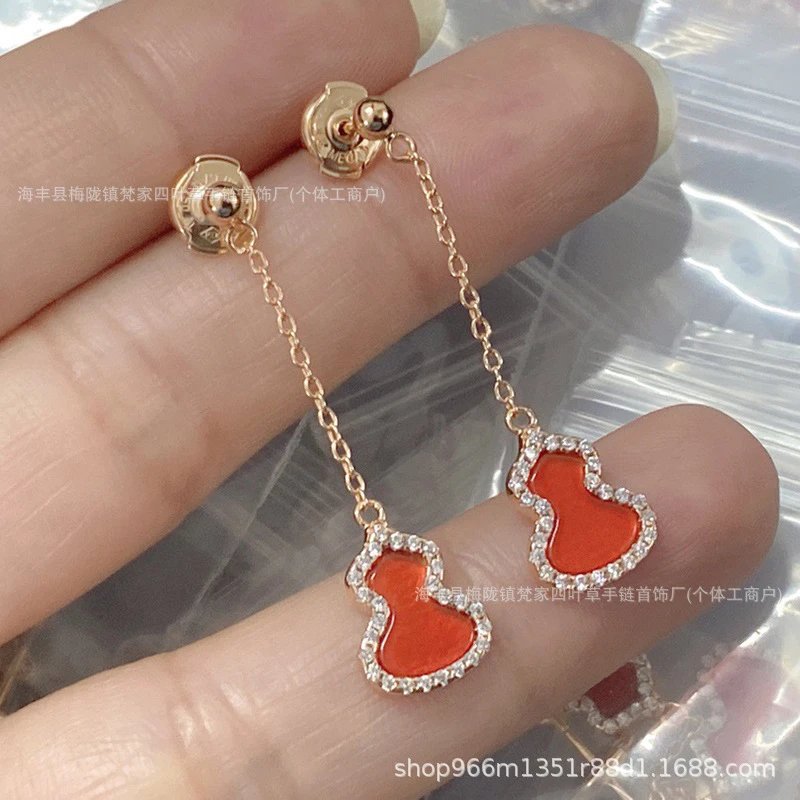 宝家荷薇莎葫芦耳钉女刘诗诗同款中国红耳吊白贝母红玛瑙精致ins