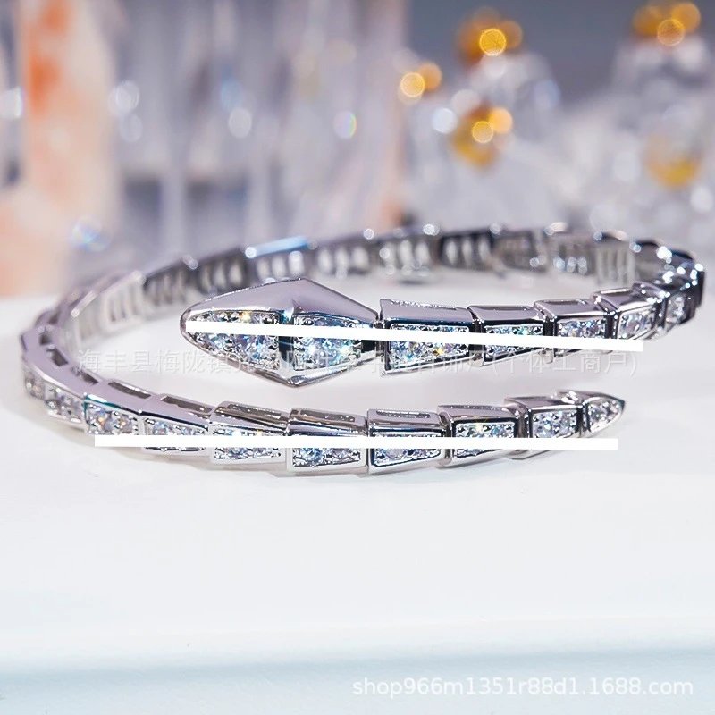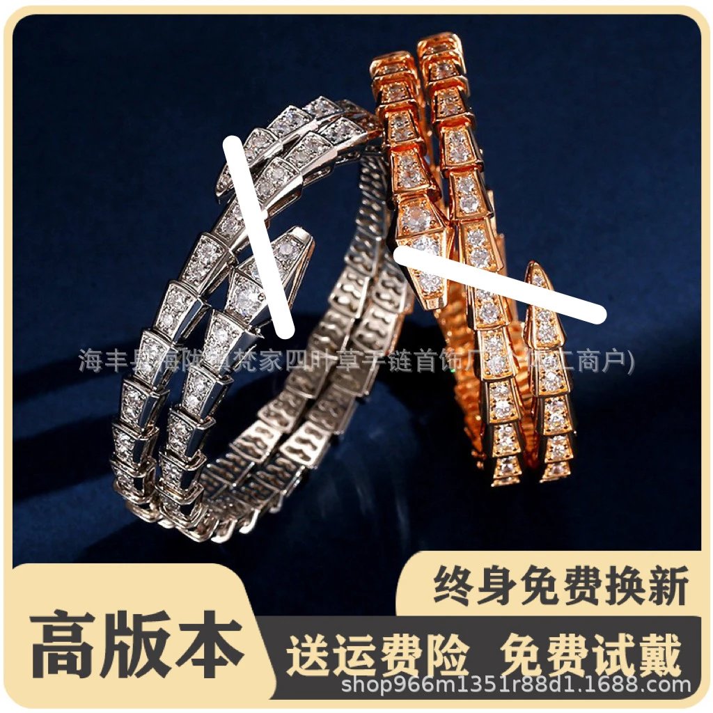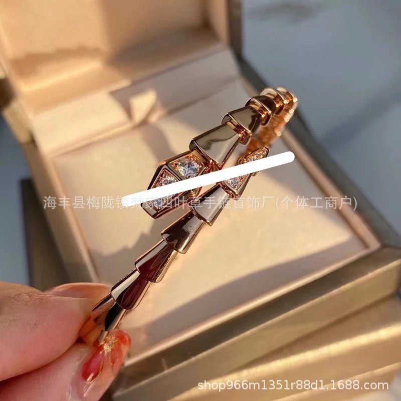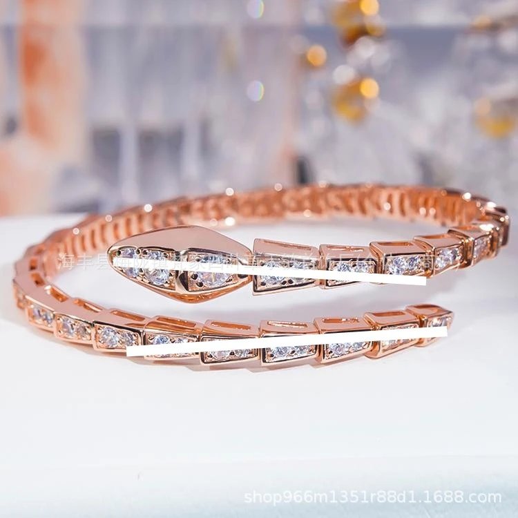 宝家新款玫瑰金蛇形手镯女奢华大气手链蛇头手环超闪蛇骨ins