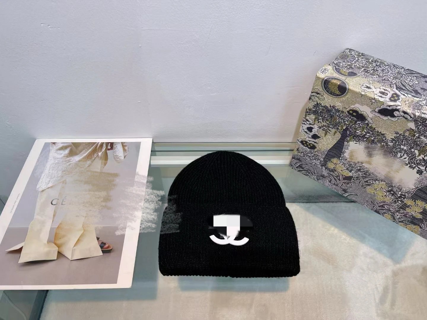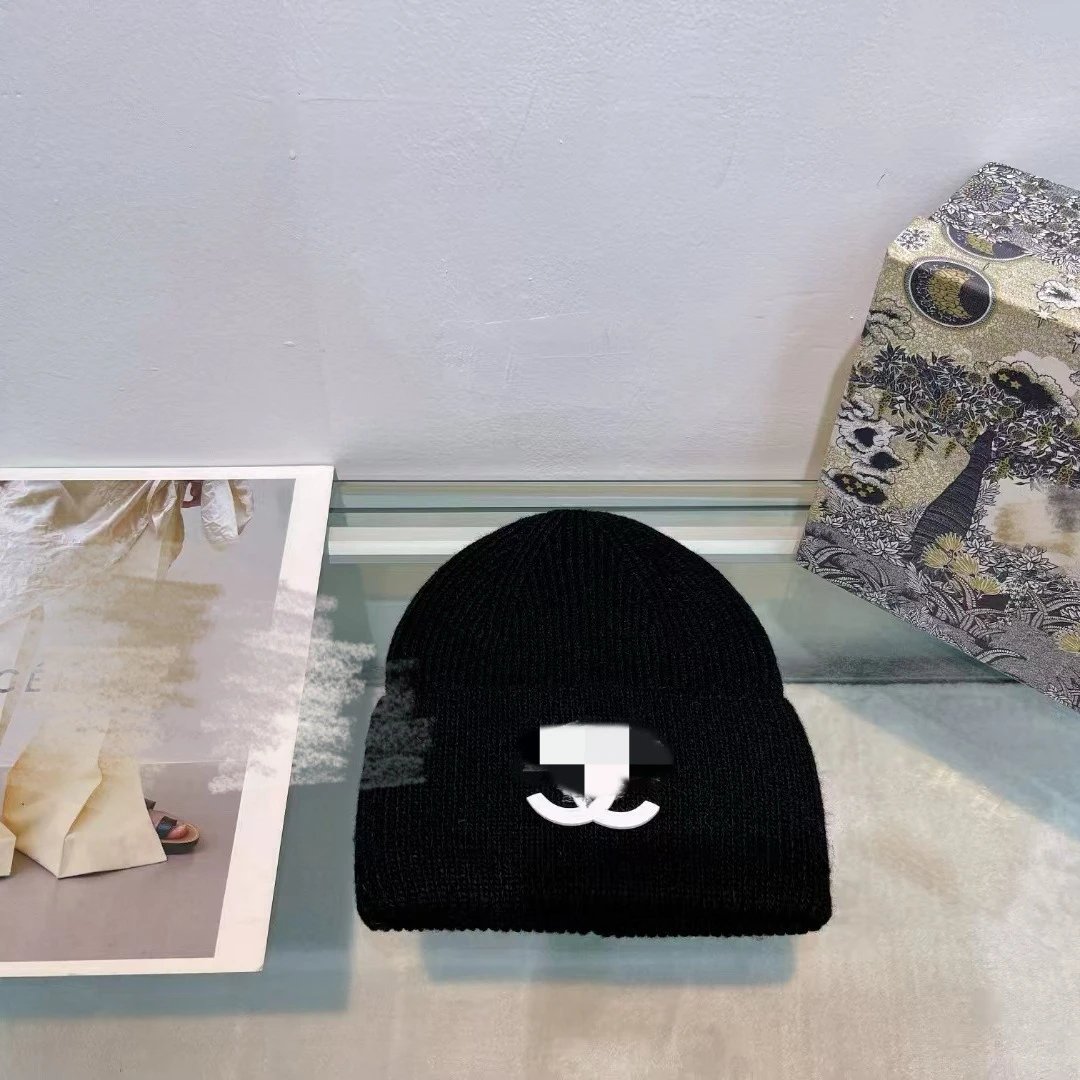 爆款秋冬款ins网红同款双C皮标针织帽男潮流搭配包头帽