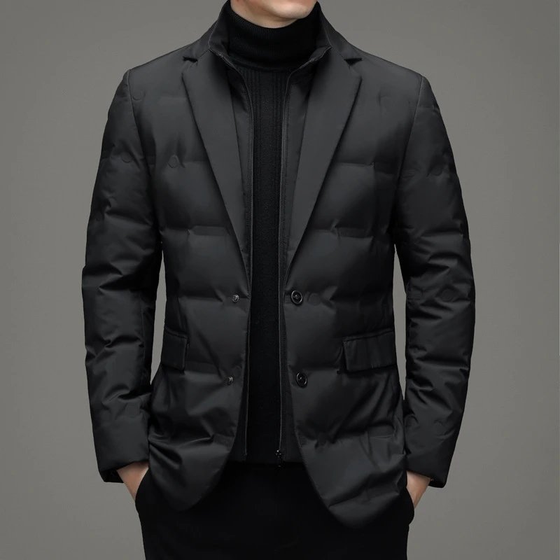 冬季男士防寒羽绒服外套西装围巾领简约羽绒服男爆款高端男装
