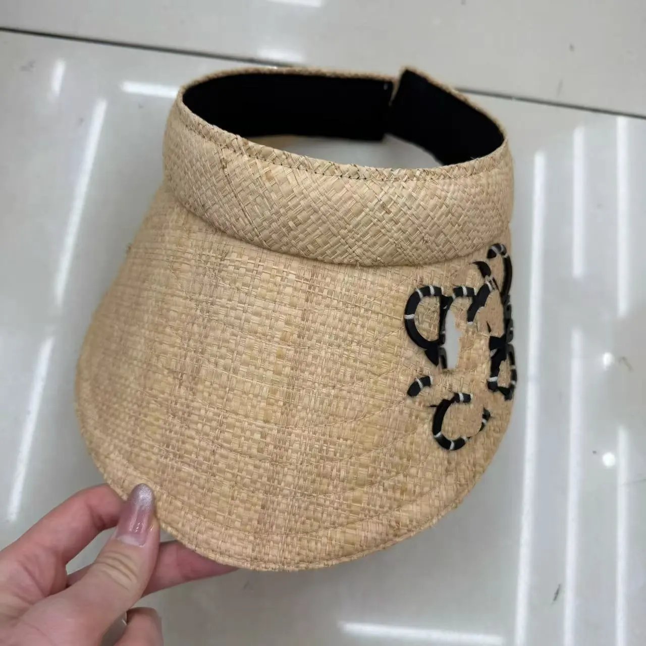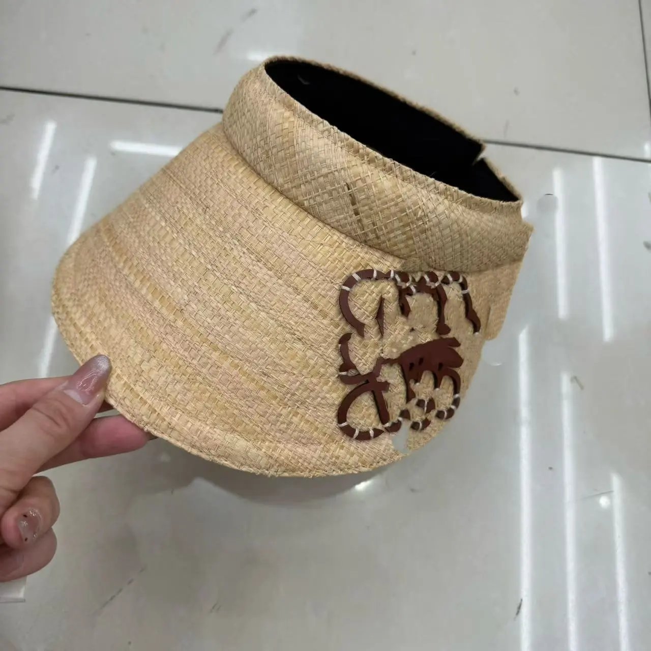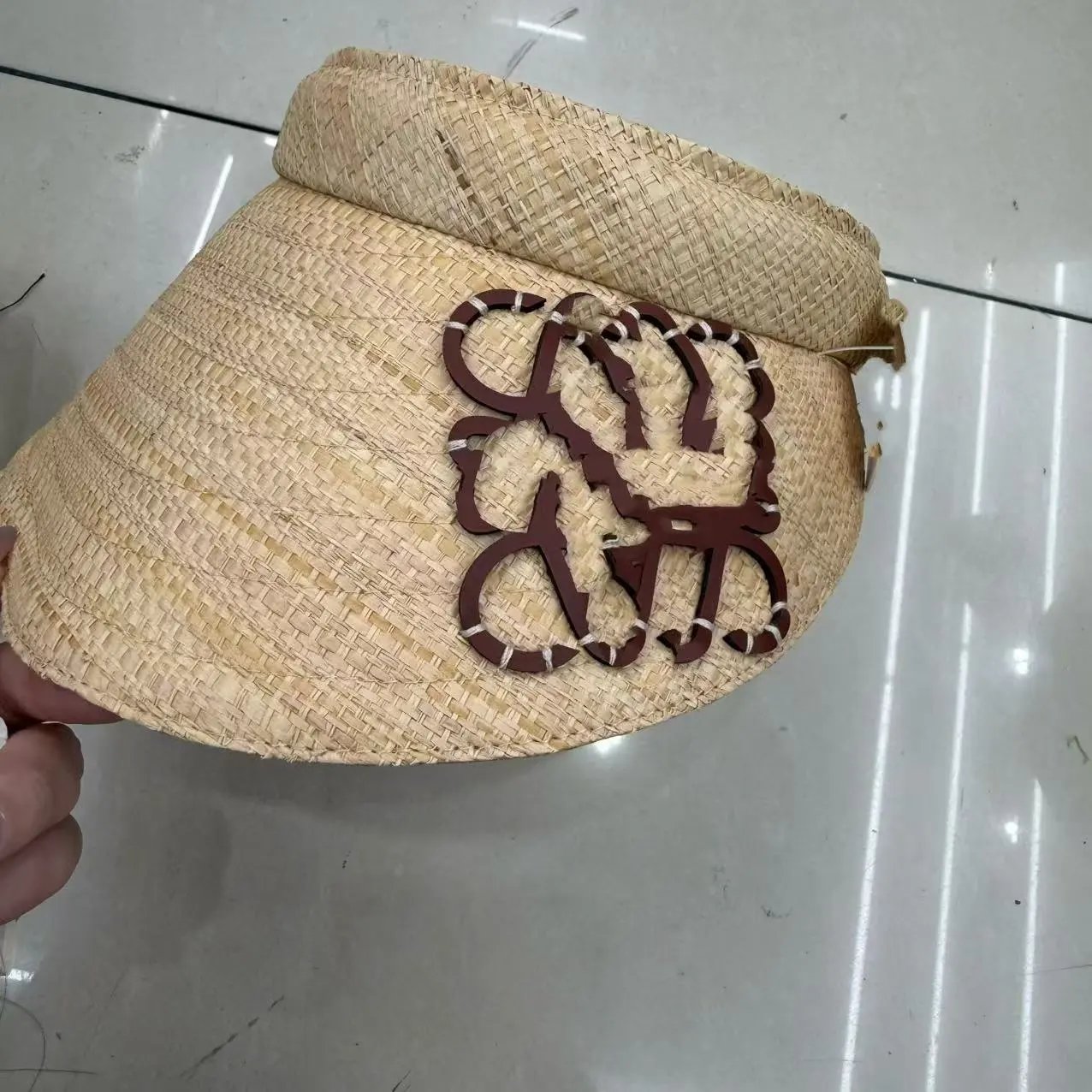 高货新款罗家手缝标棕榈草编宽沿遮阳帽夏季女士手钩拉菲草空顶帽