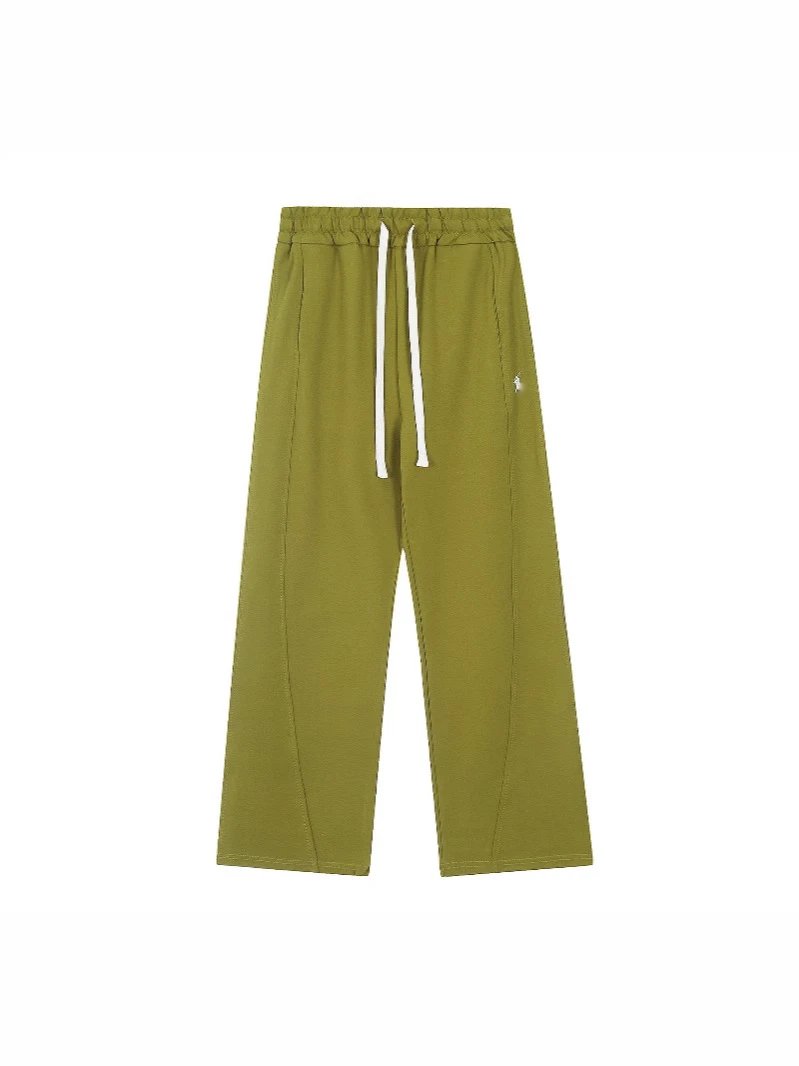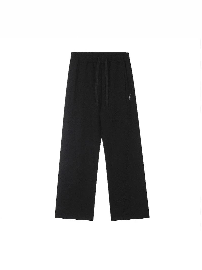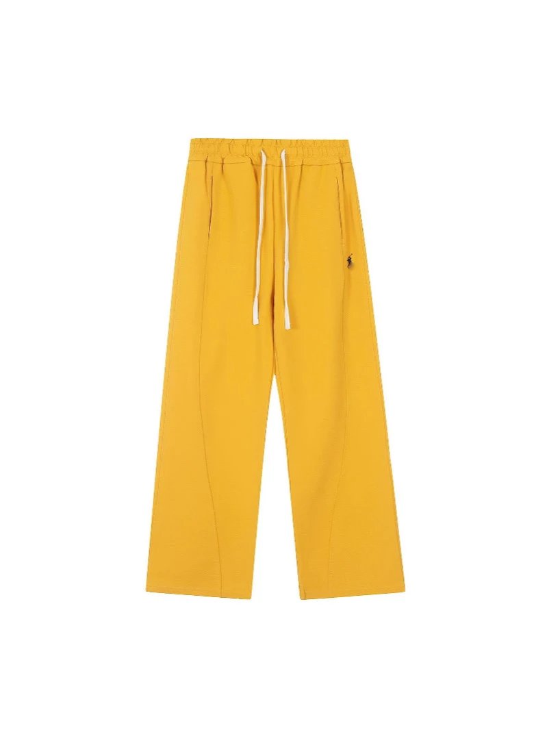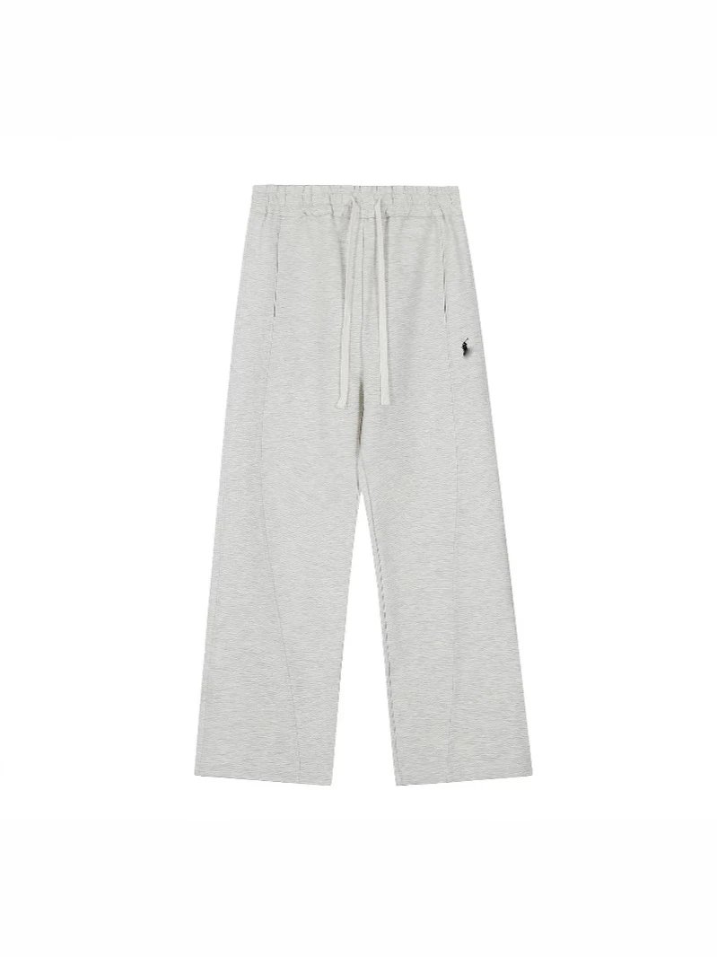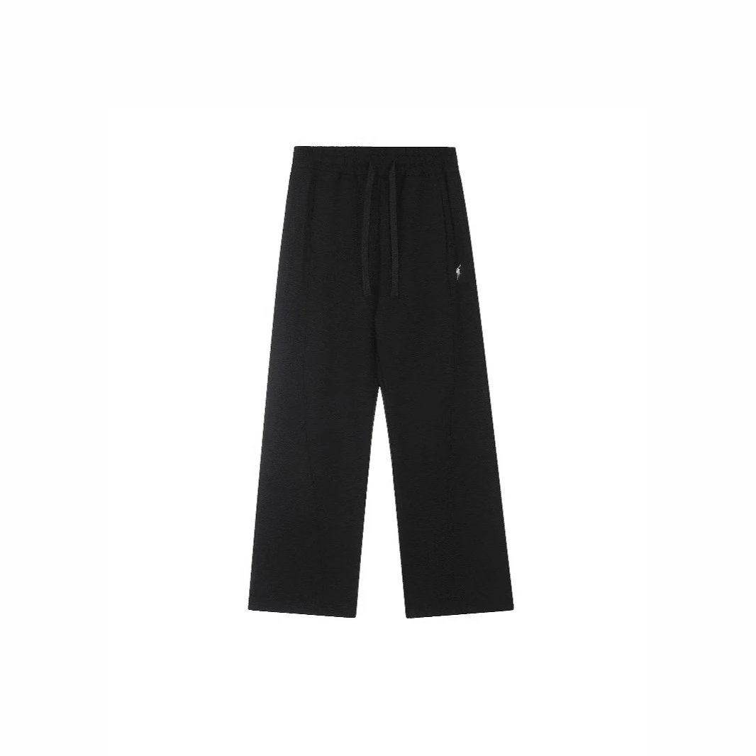拉夫经典基础纯色小马刺绣logo休闲阔腿长裤男女同款拼接直筒长裤