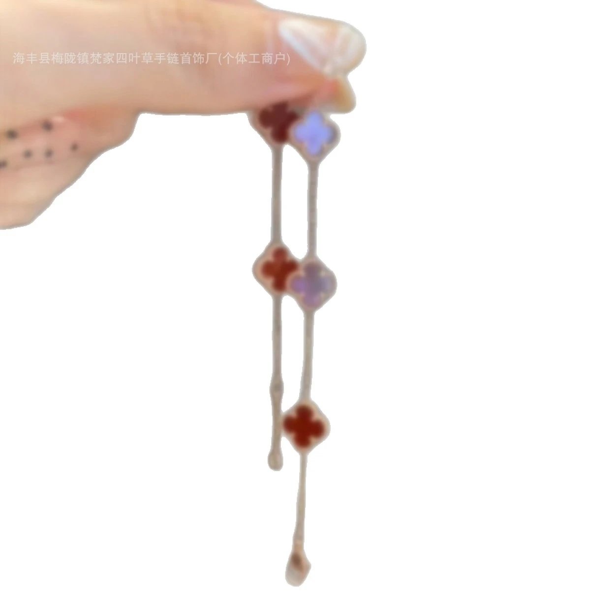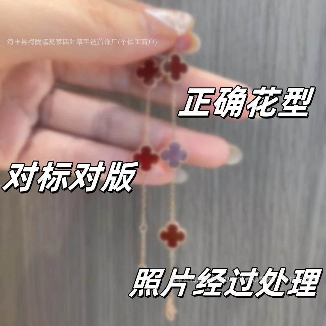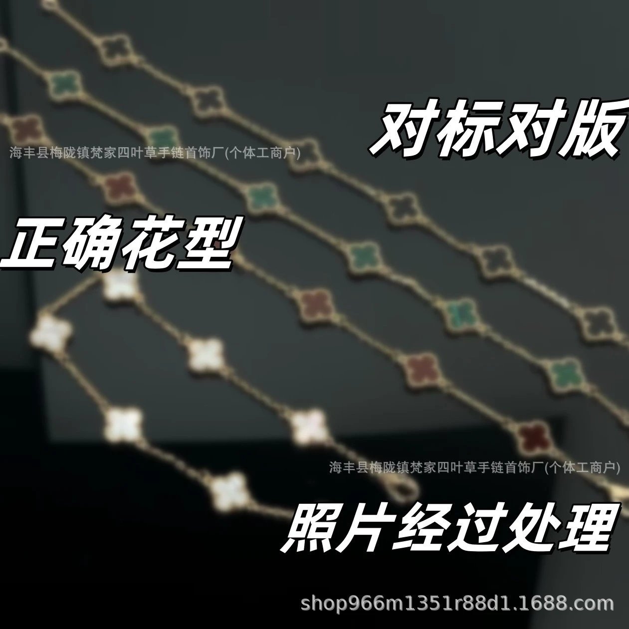 梵家小号四叶草五花手链女mini紫色玉髓白贝母虎眼石叠戴设计