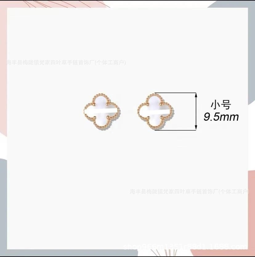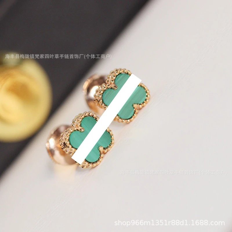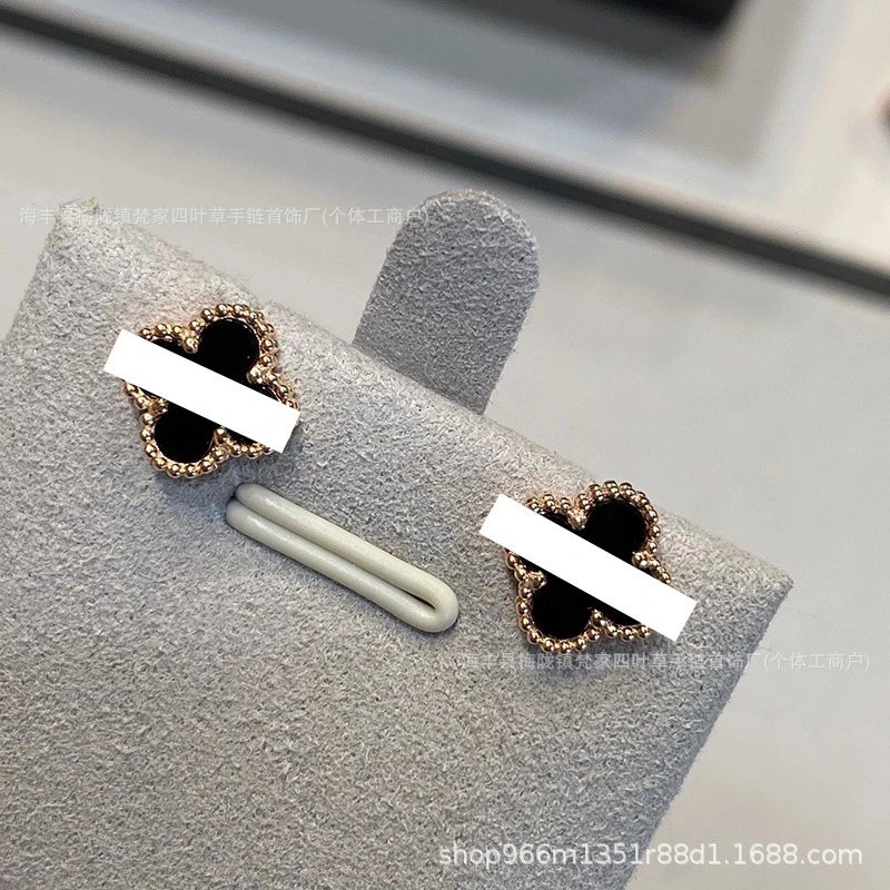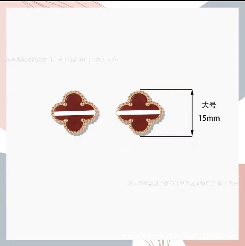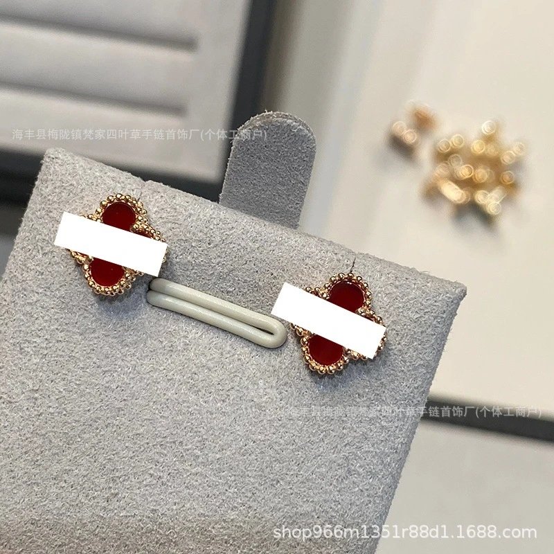 梵家mini四叶草耳钉小号厚镀18k玫瑰轻奢高版时尚红玉髓百搭耳环