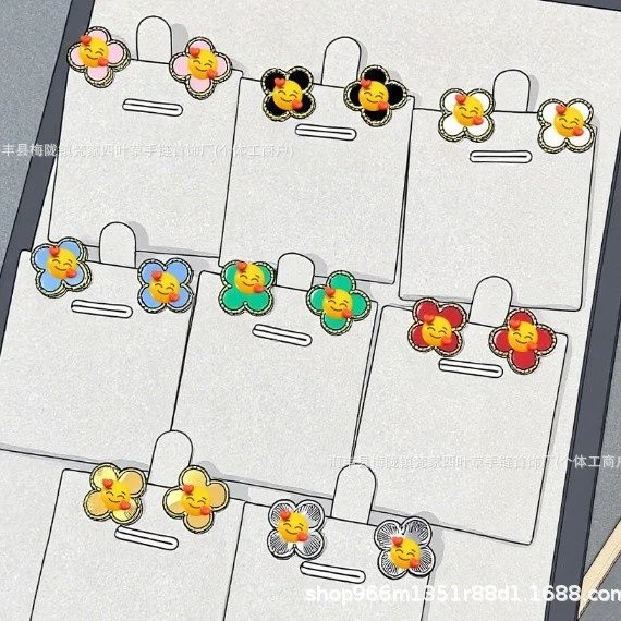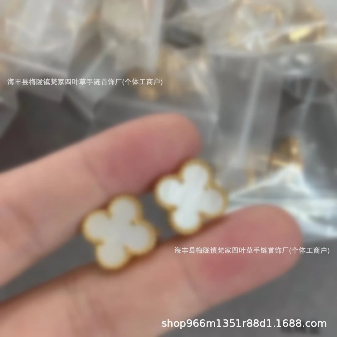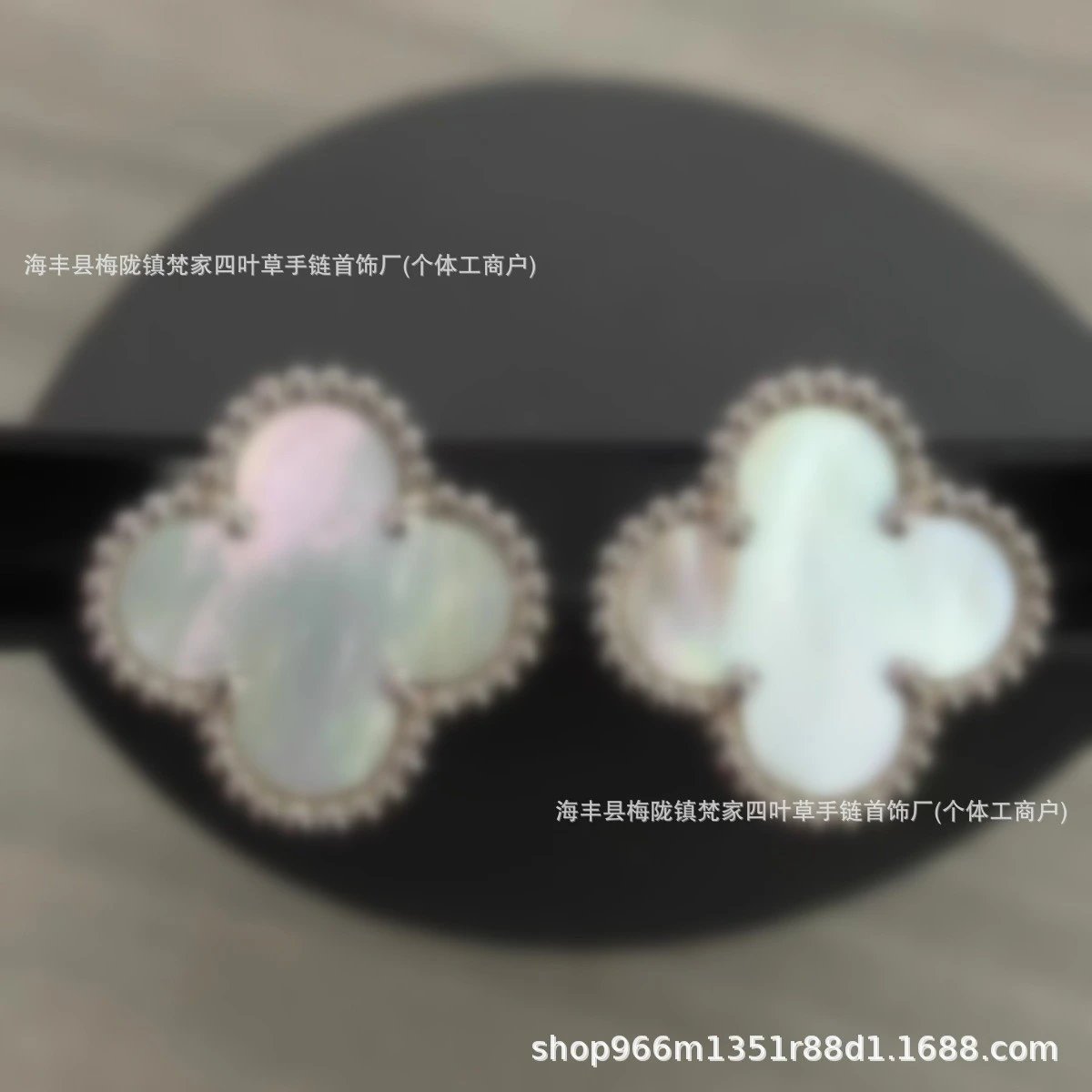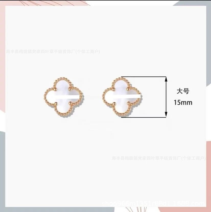 梵家mini四叶草耳钉小号厚镀18k玫瑰轻奢高版时尚红玉髓百搭耳环