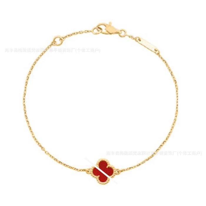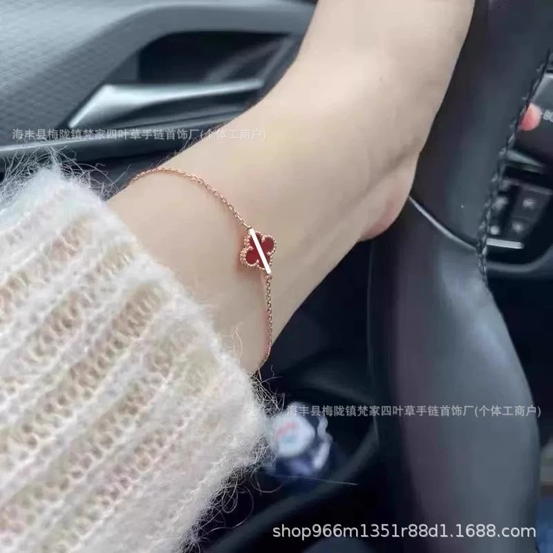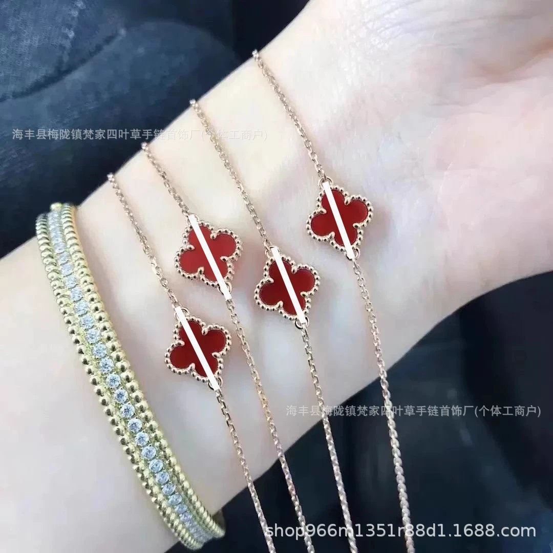 梵家高品质五花迷你六花四叶草手链红玛瑙mini手链女轻奢ins