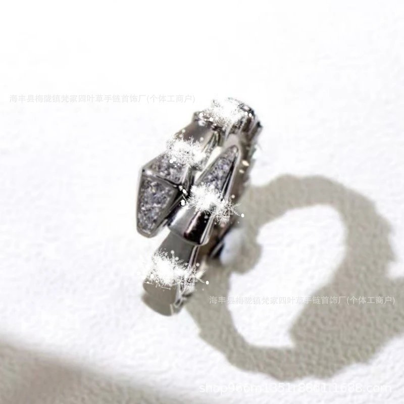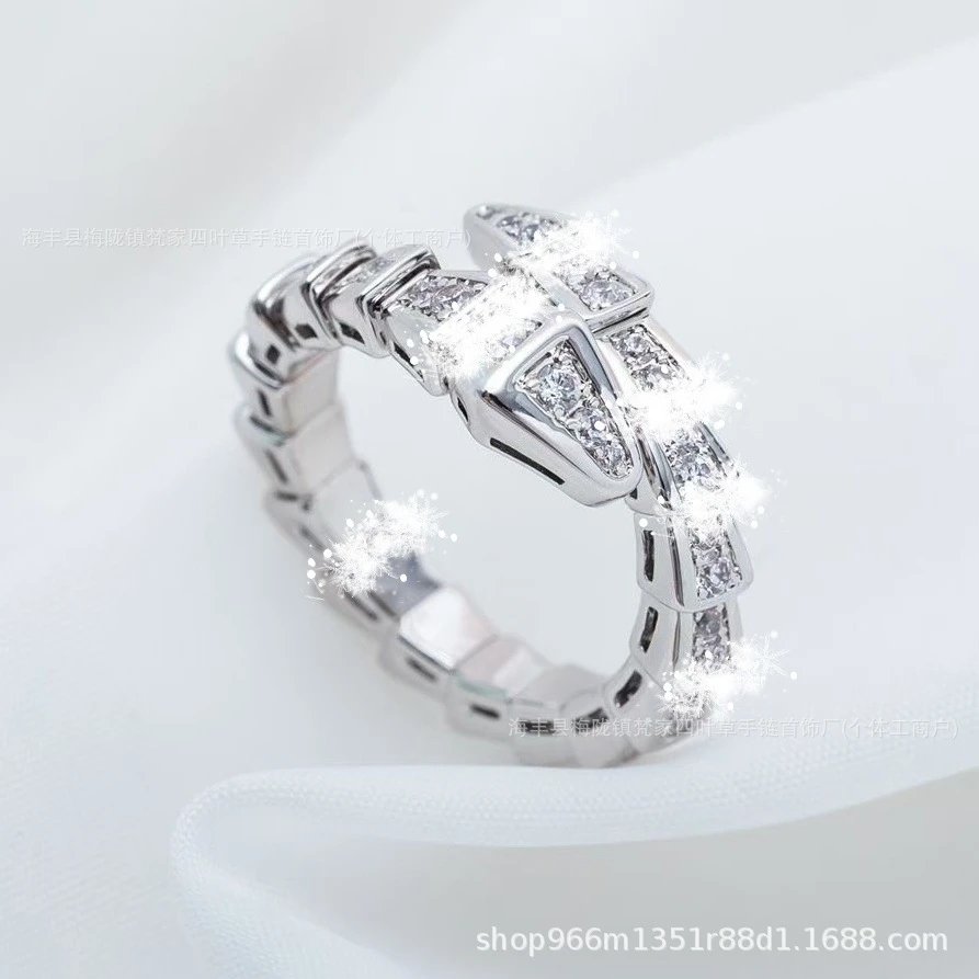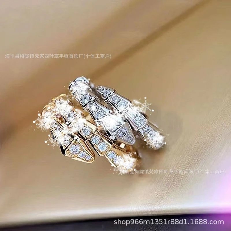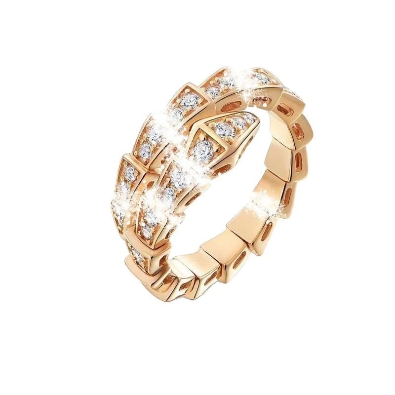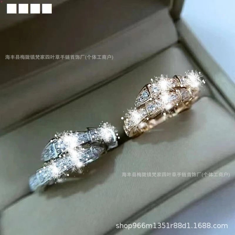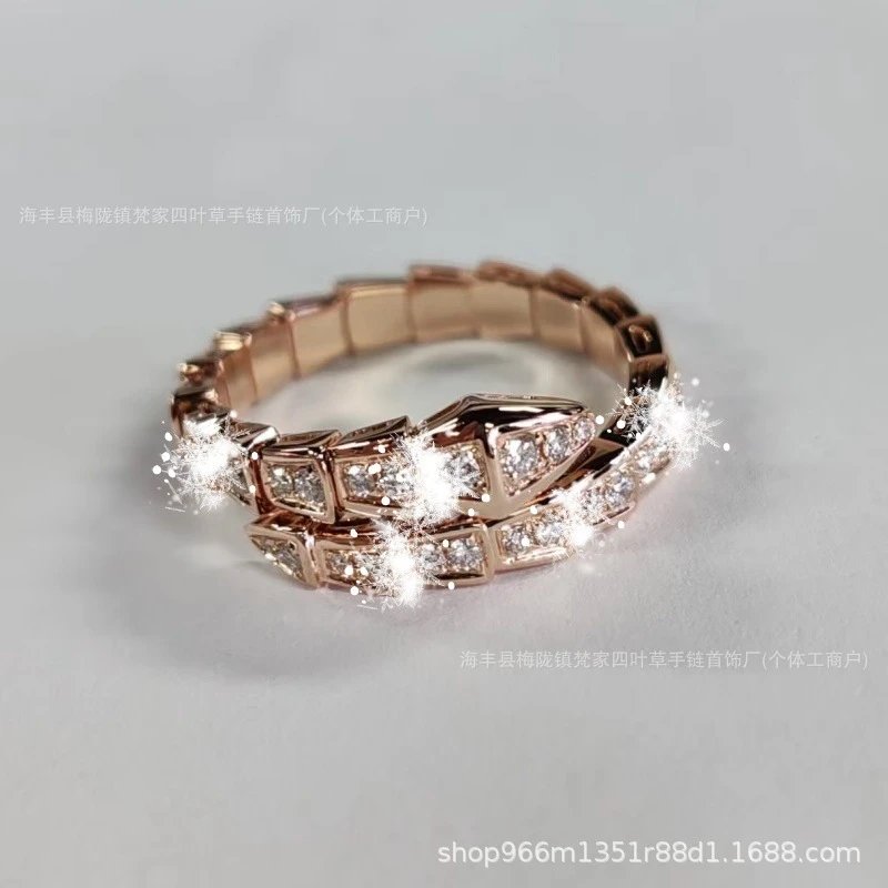宝家蛇形戒指情侣款经典满钻玫瑰金百搭男女情侣指环百搭风