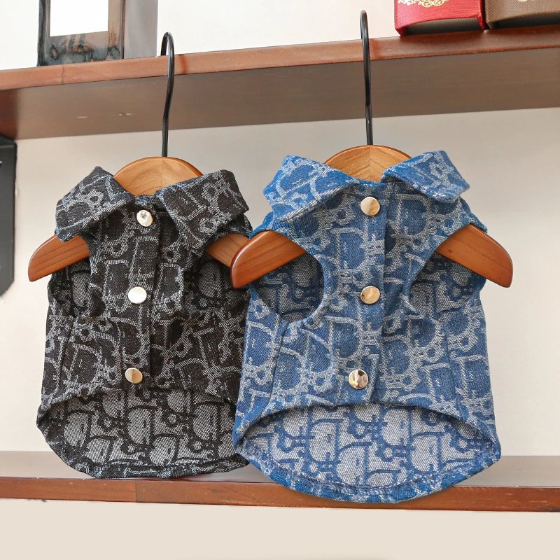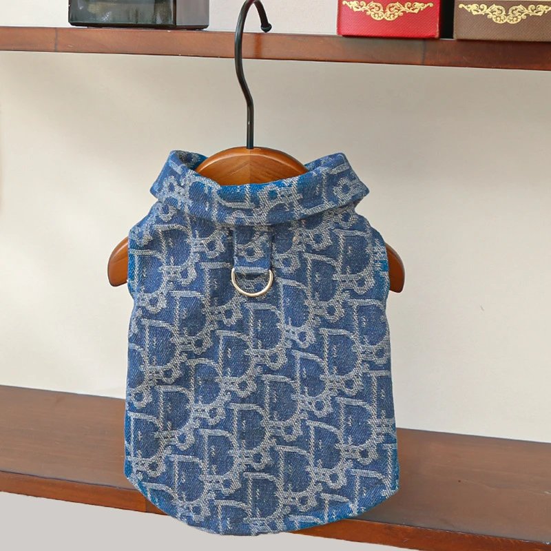秋冬季宠物衣服小中狗狗猫咪衣服提花牛仔衣比熊泰迪柯基法斗用品
