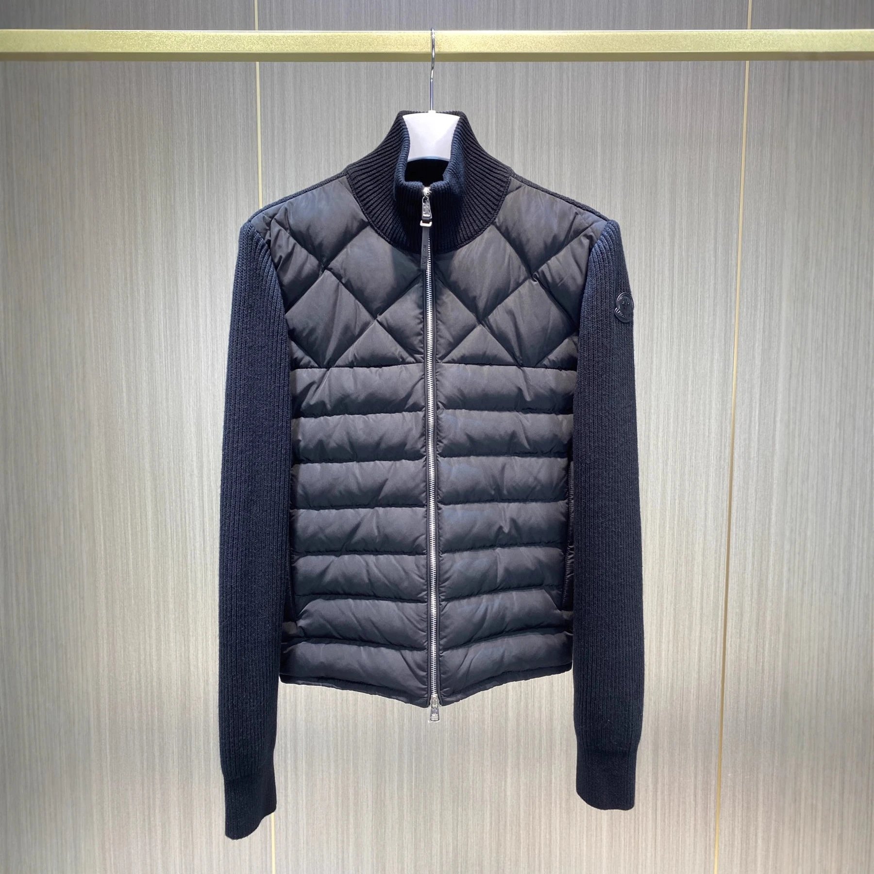 蒙家立领羊毛针织拼接羽绒服菱形格纹休闲开衫外套男女