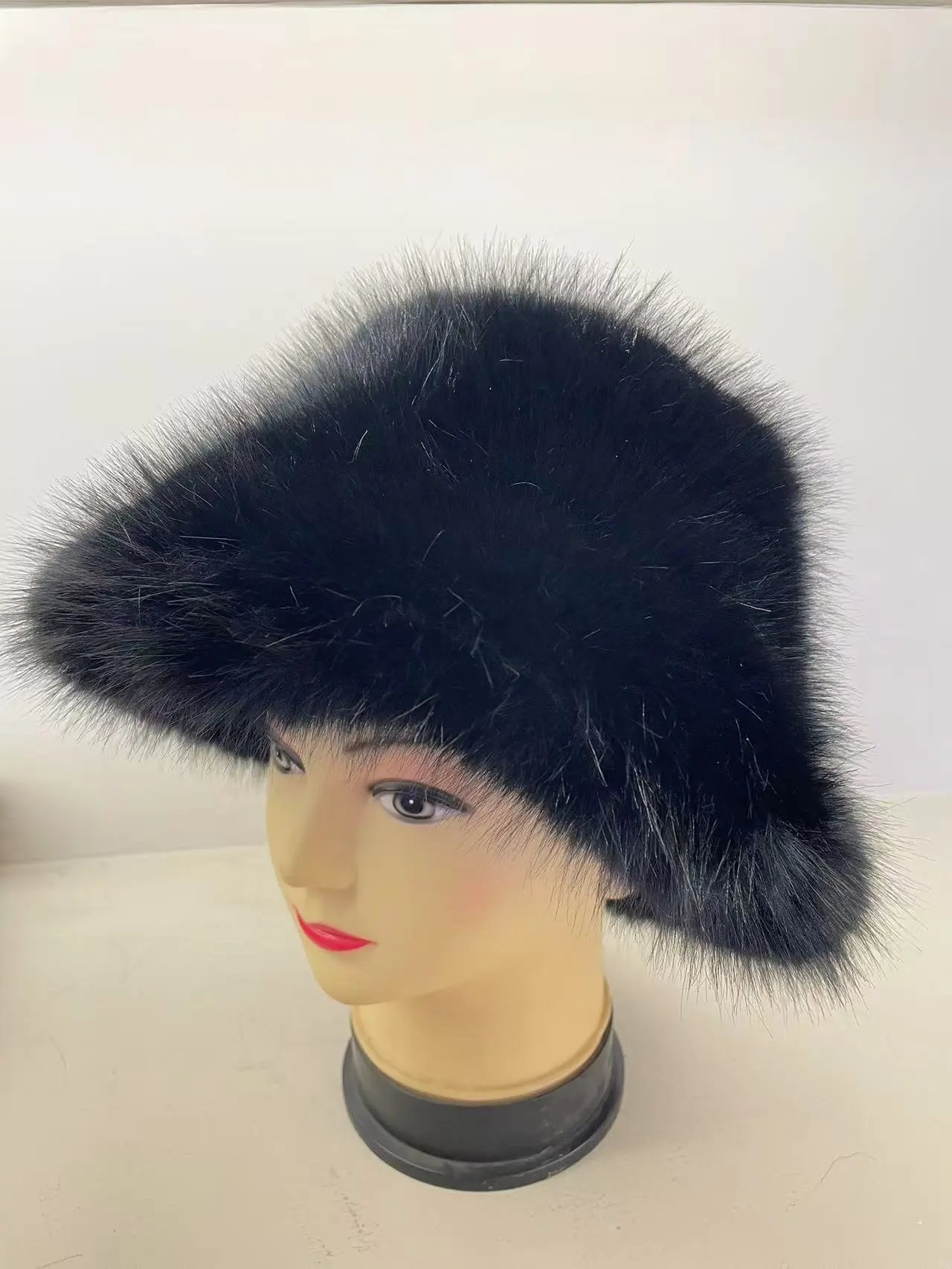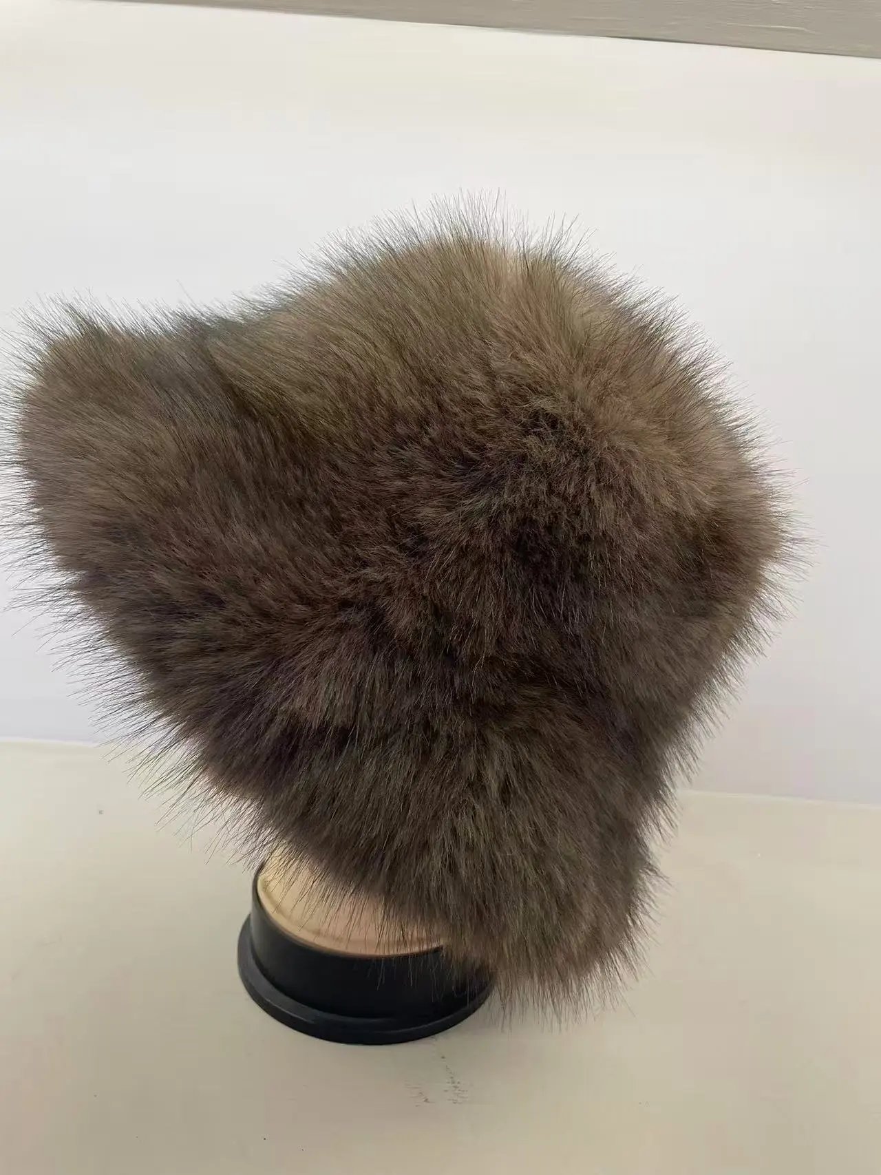 秋冬新款渔夫帽仿狐狸毛保暖百搭遮耳渔夫盆大帽檐