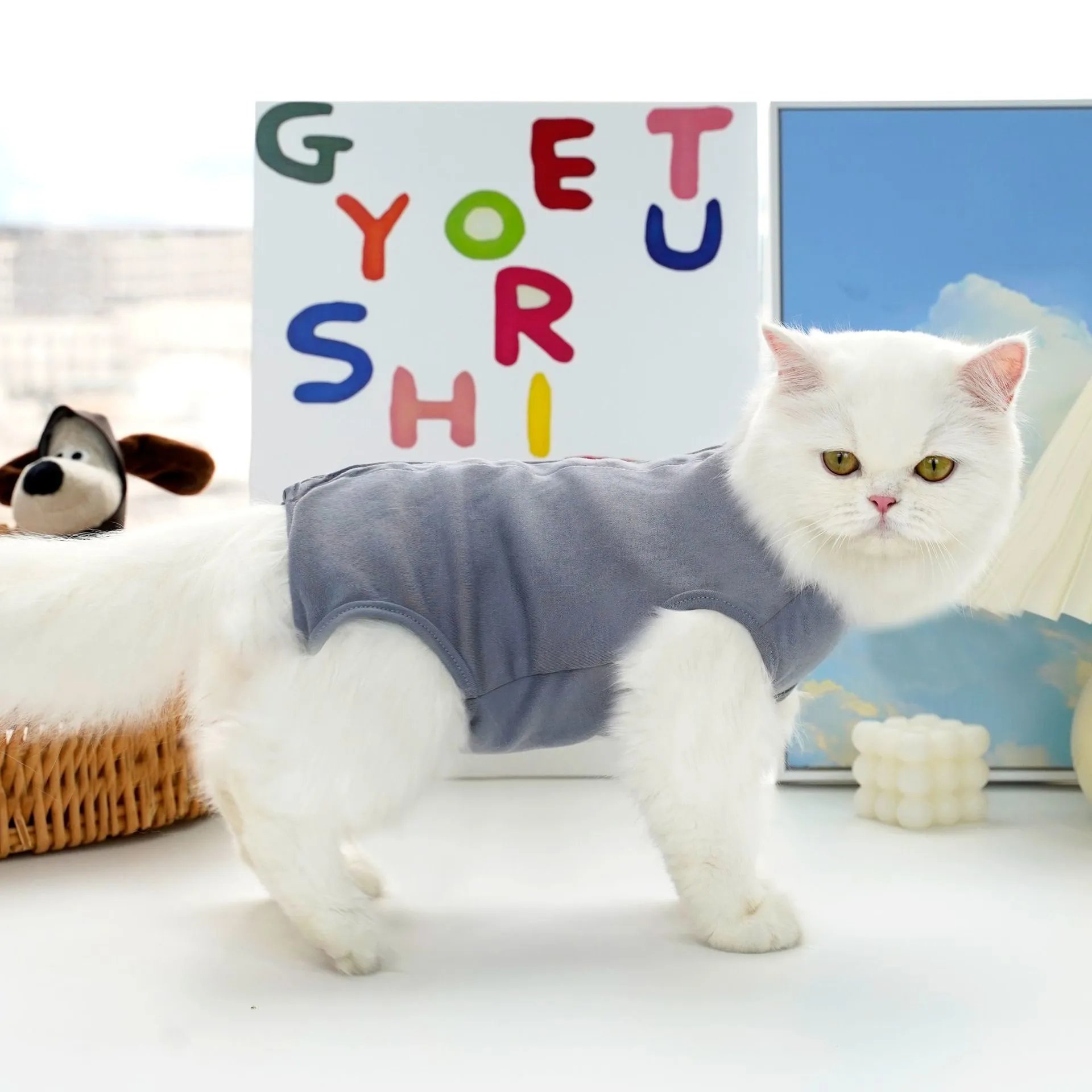 宠物四季可穿纯色条纹猫绝育服狗狗猫咪衣服小中型犬款术后狗衣服