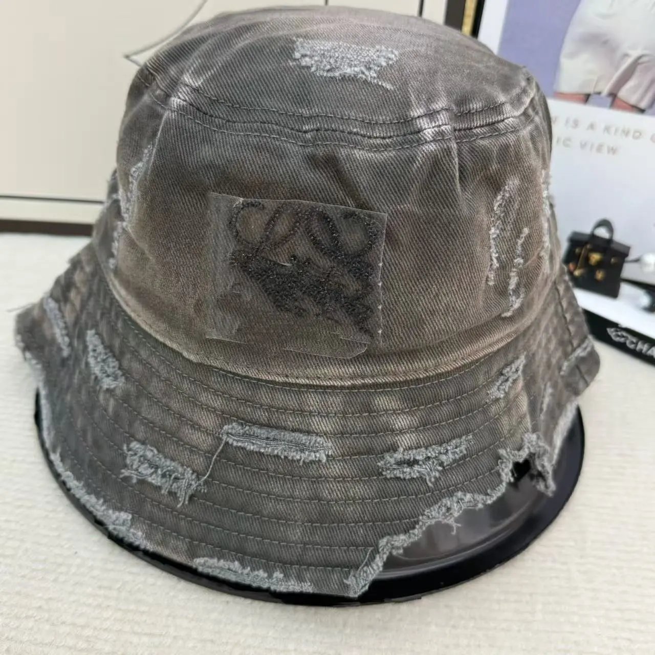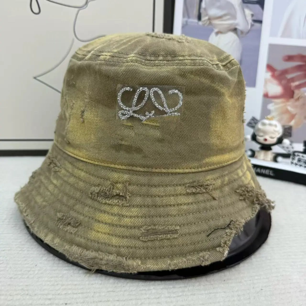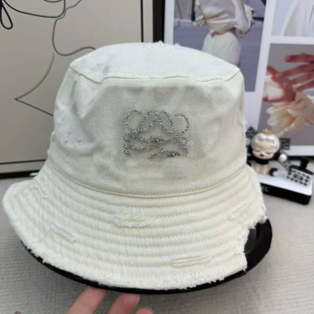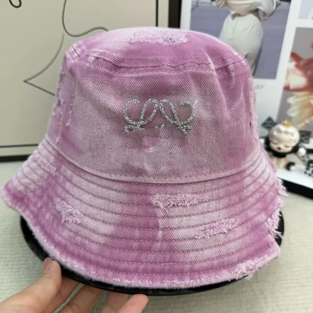 罗家正确字母水钻渔夫帽女春夏季显脸小盆帽男破洞百搭遮阳防晒帽