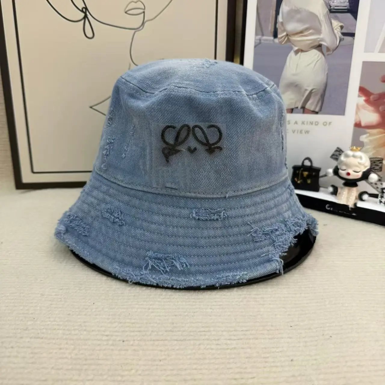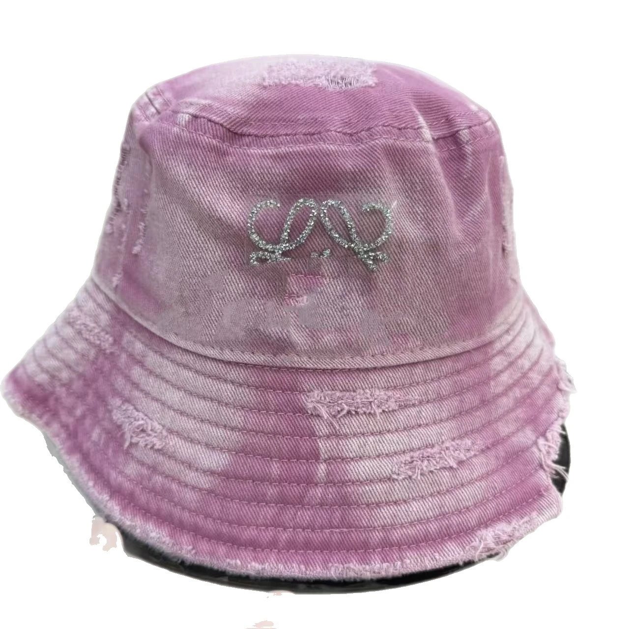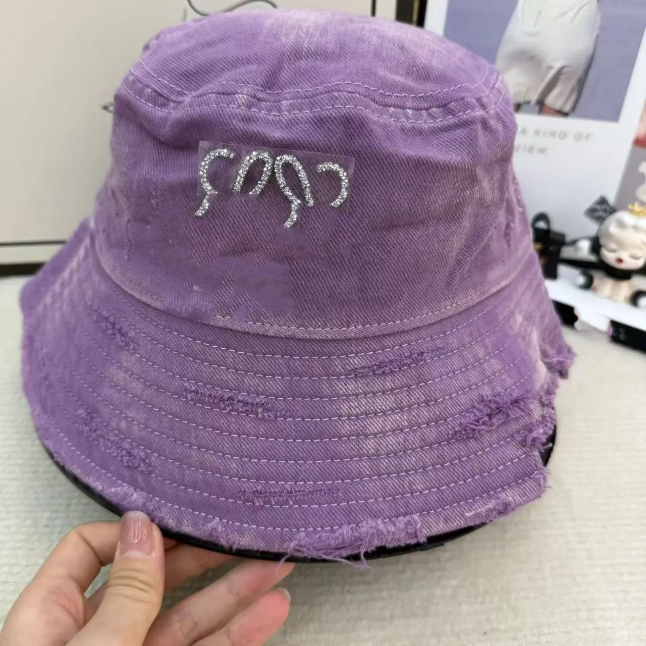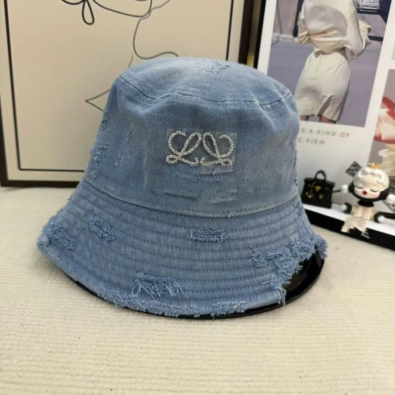 罗家正确字母水钻渔夫帽女春夏季显脸小盆帽男破洞百搭遮阳防晒帽