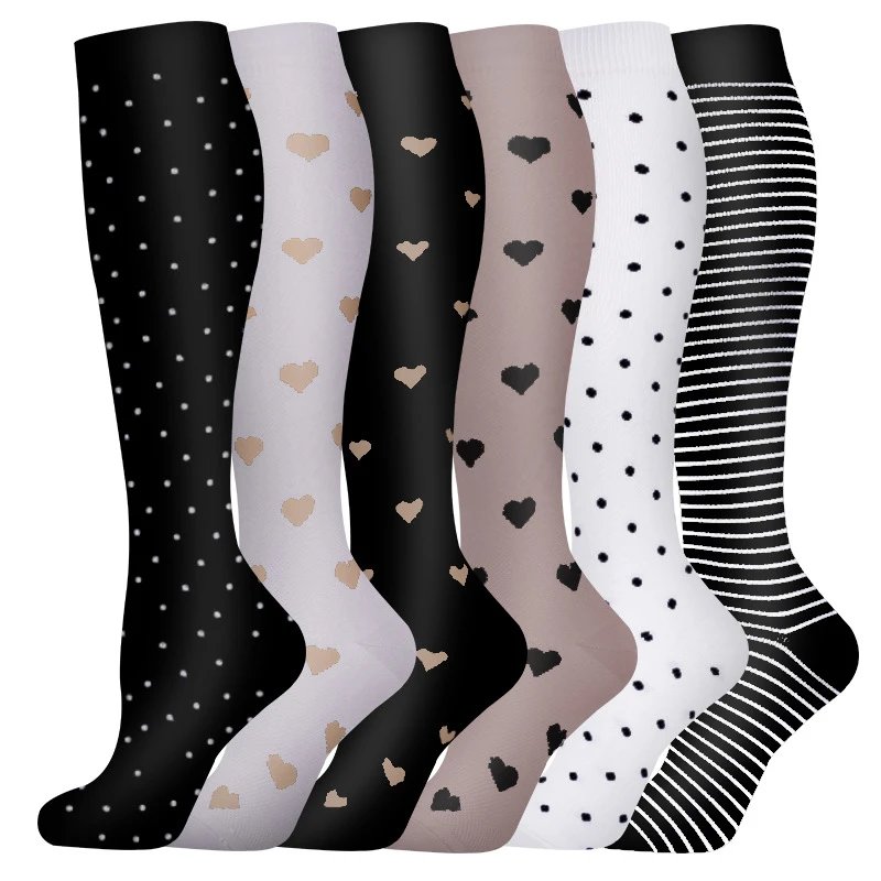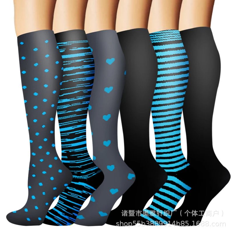 跨境组合装彩绘运动压力袜中长筒弹力压缩袜嘻哈防曲张小腿袜