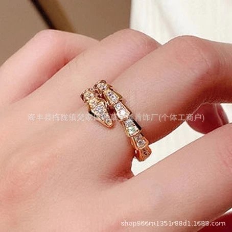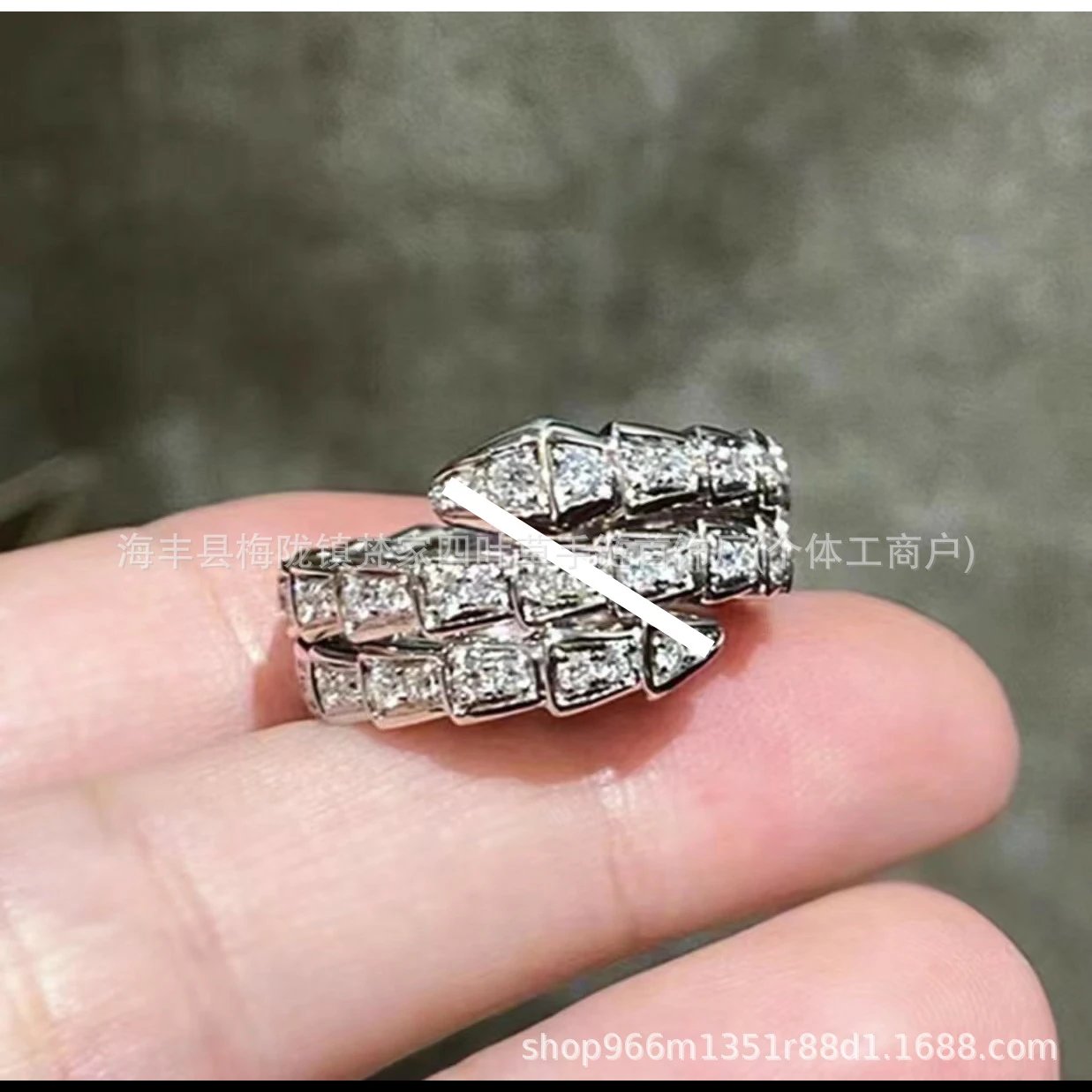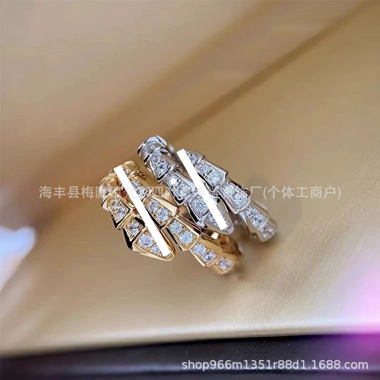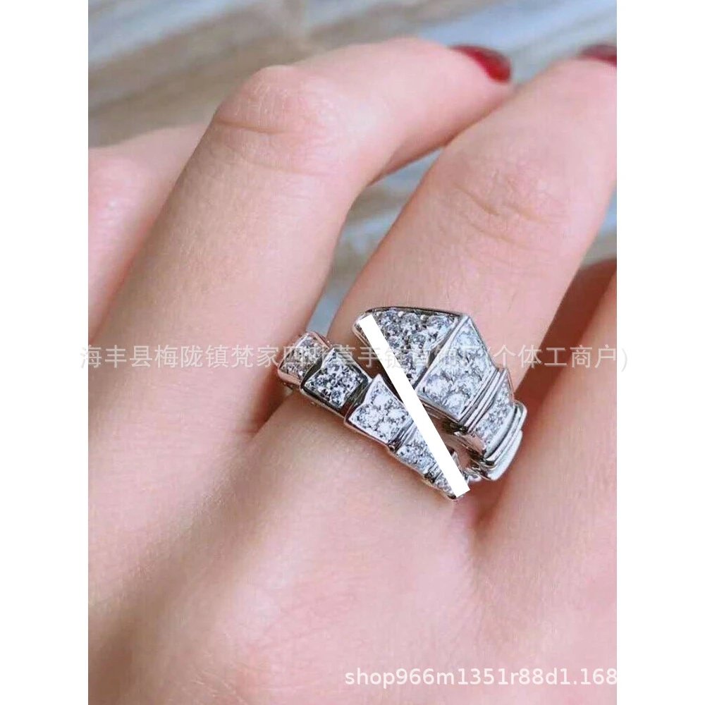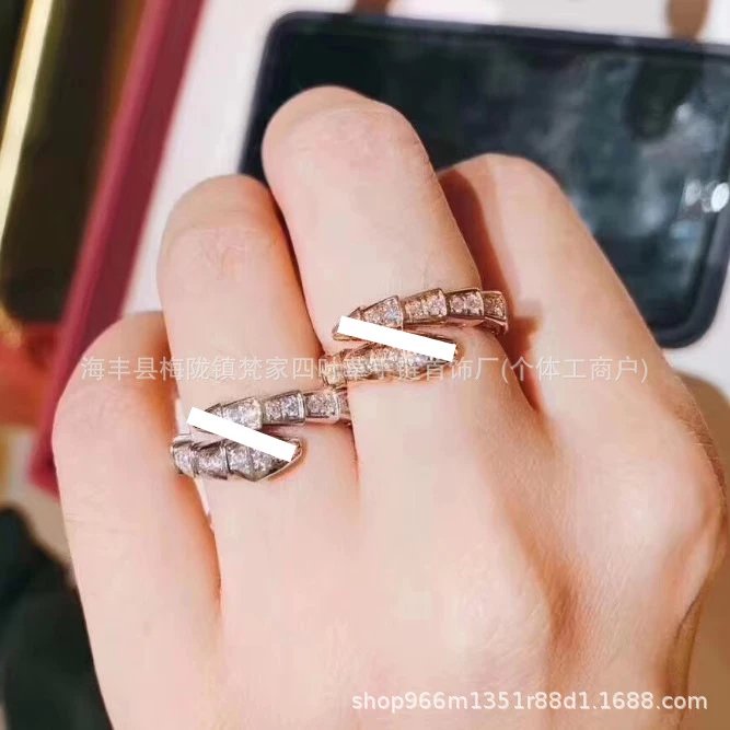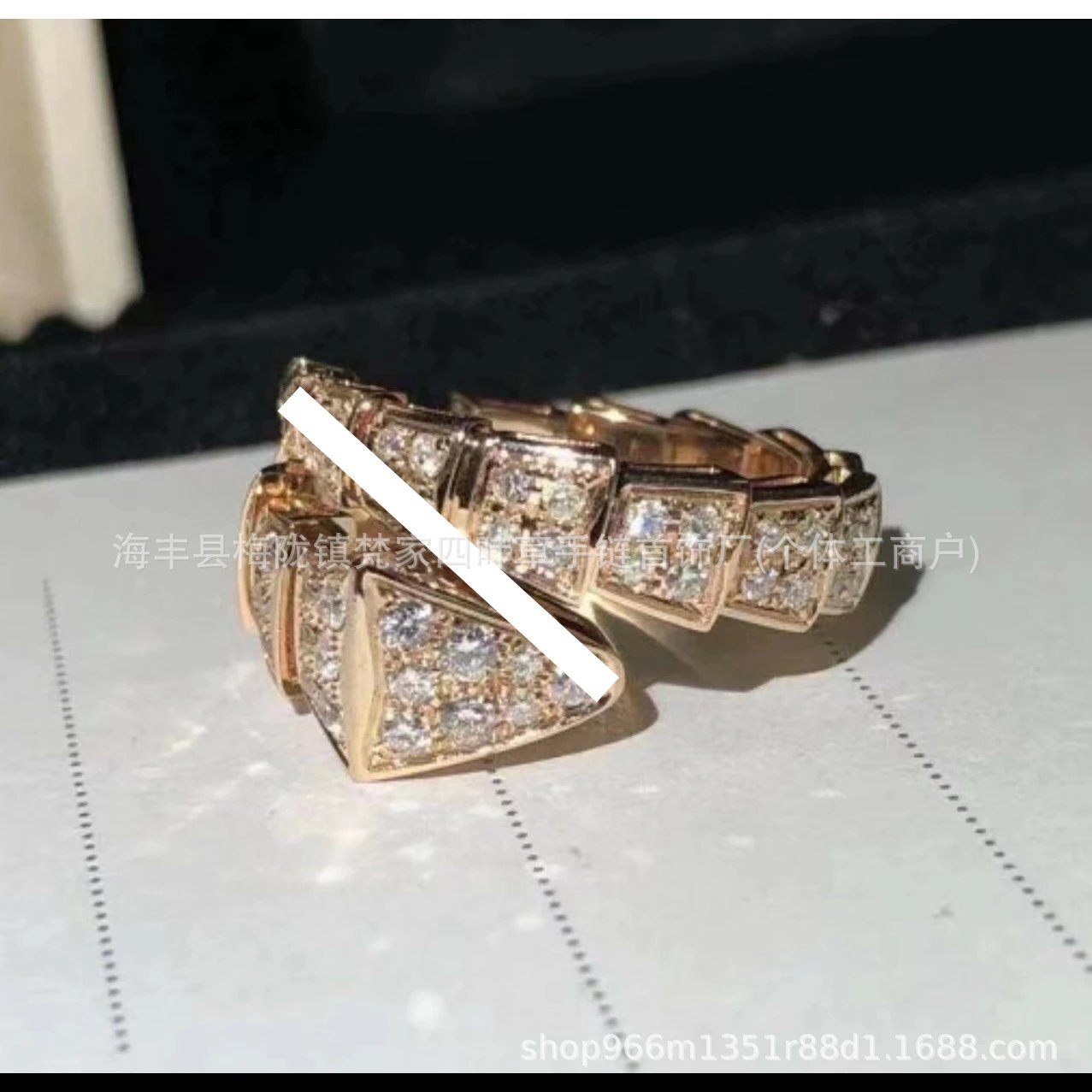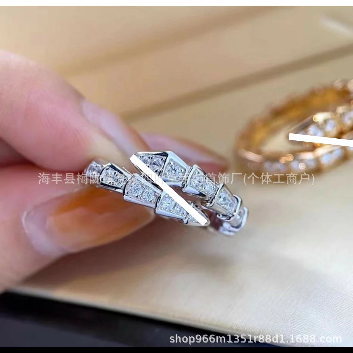 宝家新款轻奢蛇形手镯女镀18K贝母首尾满钻蛇骨手环情侣调节戒指