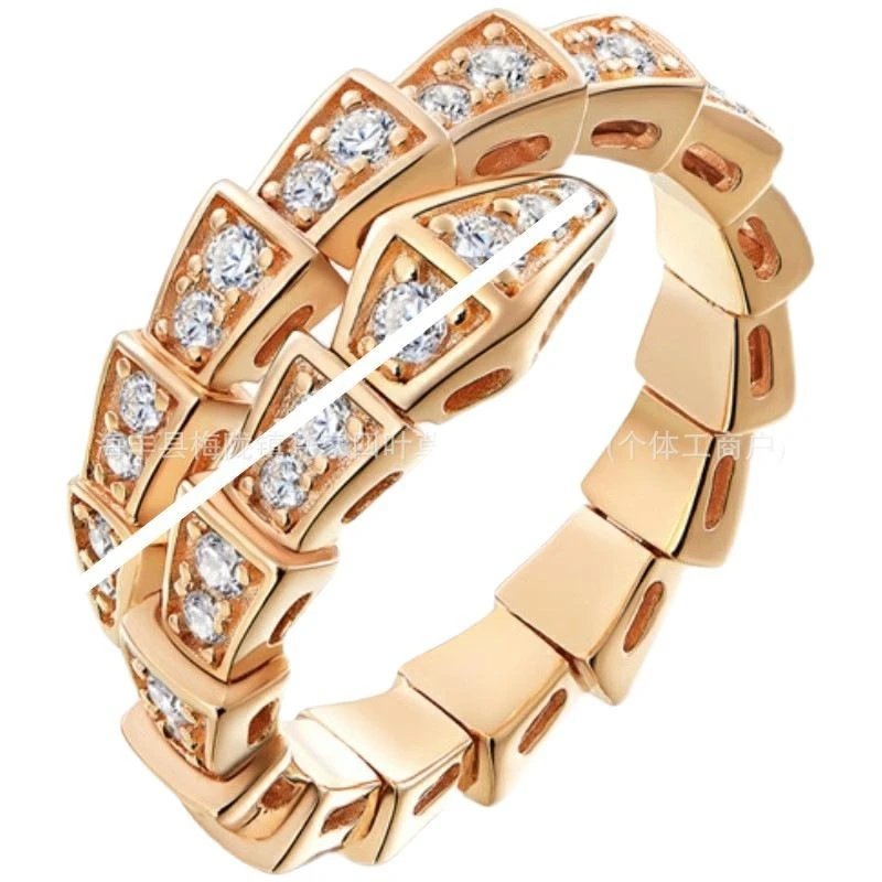 宝家蛇戒指女合金 镀18k玫瑰金设计蛇骨三圈大头蛇戒简约指环
