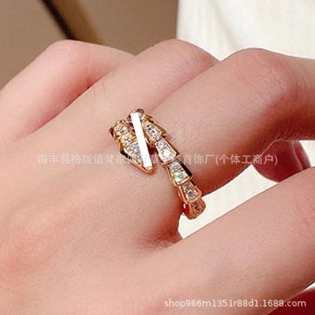 v金宝家蛇骨戒指女白贝母设计18K玫瑰金高级感镶钻轻奢