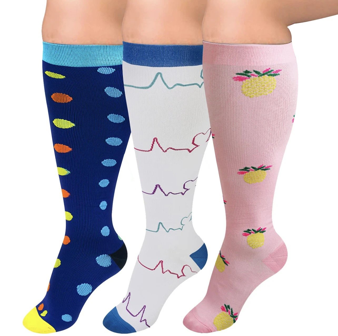 亚马逊跨境加肥加大袜 胖子压缩袜男女跑步健身小腿袜欧美加大码