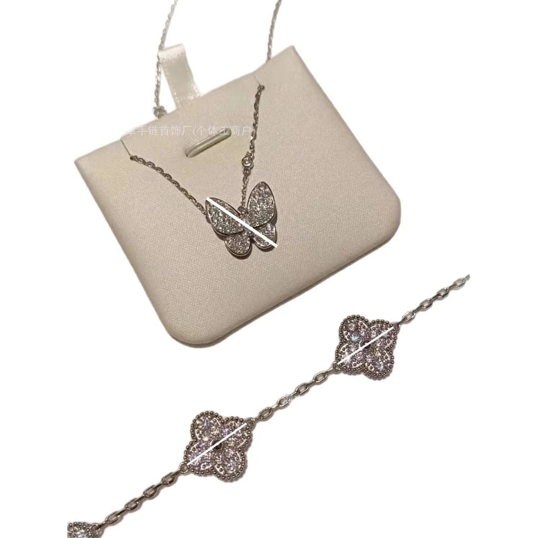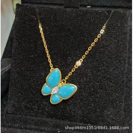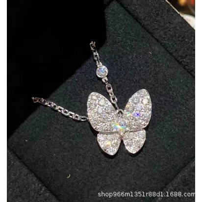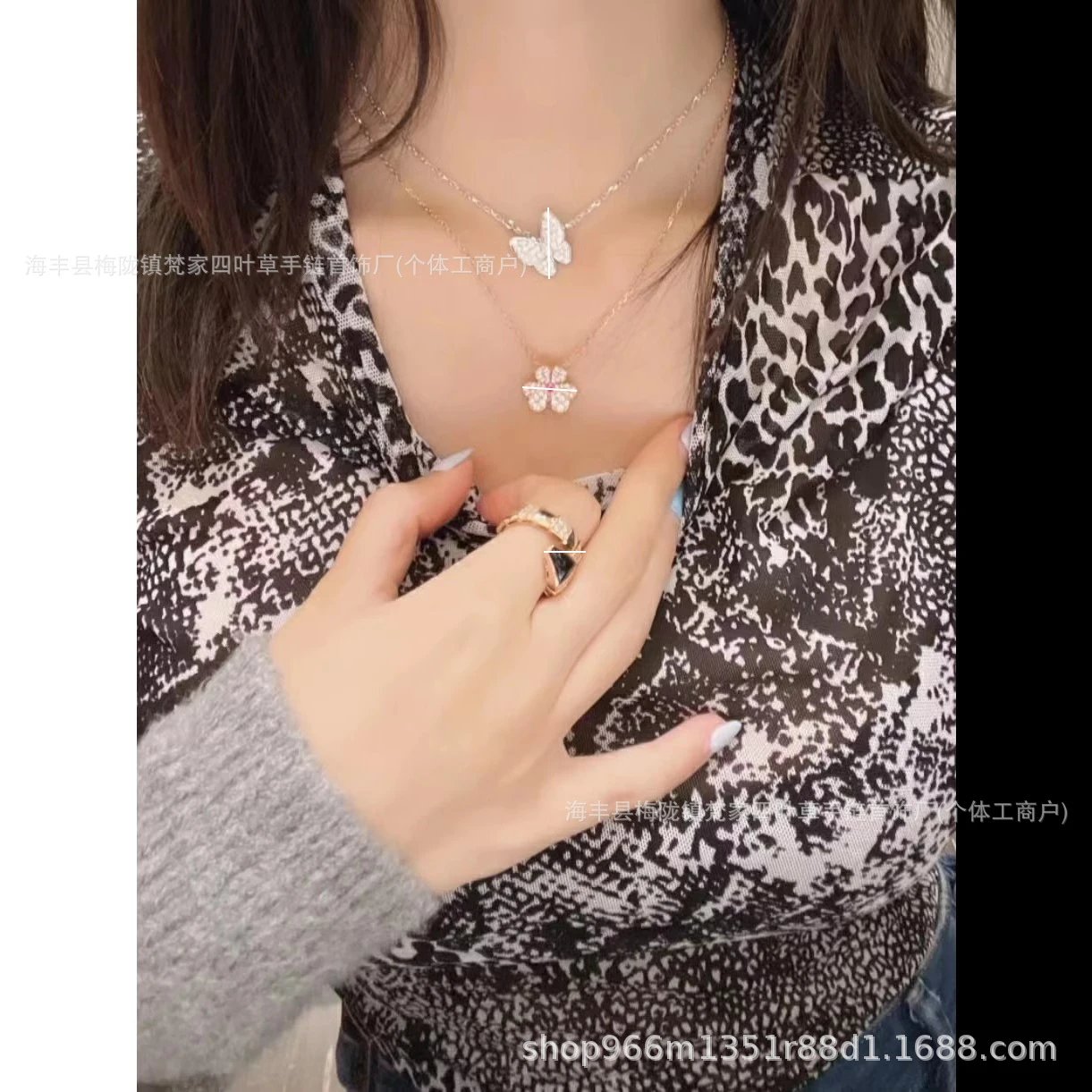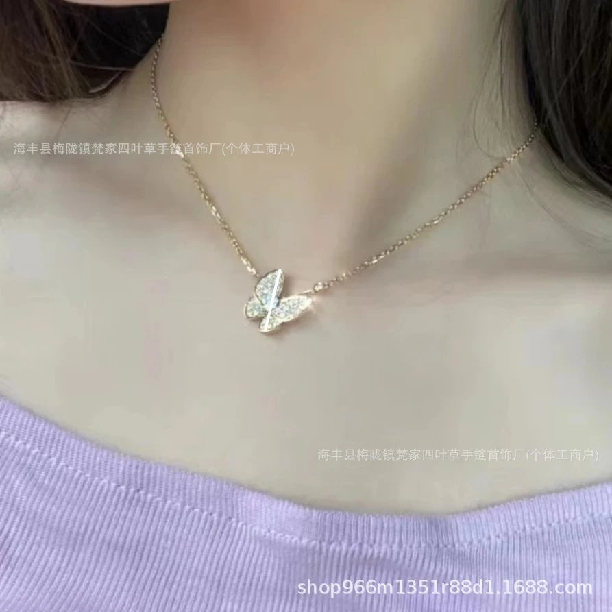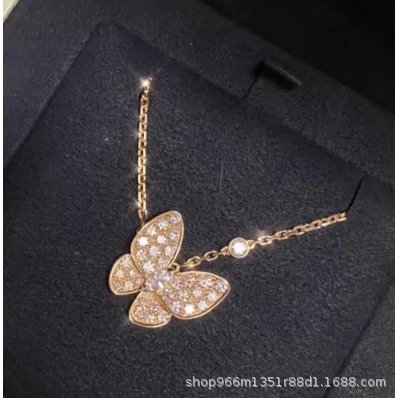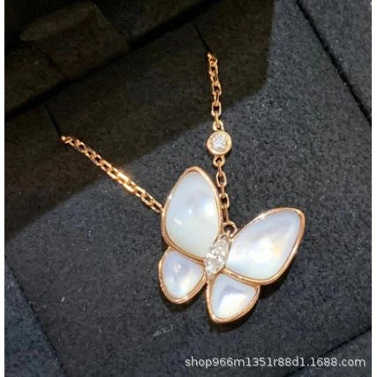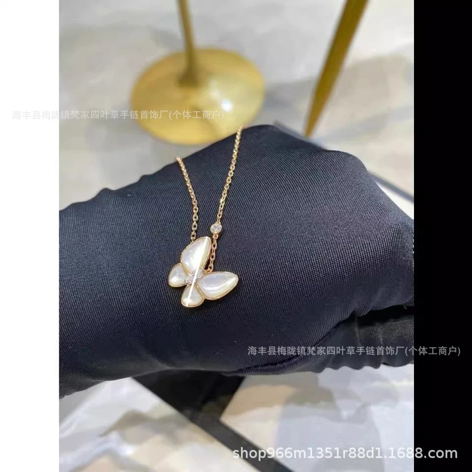 梵家高级感满钻蝴蝶项链锁骨链镀18K玫瑰金锁骨链白贝母简约轻奢
