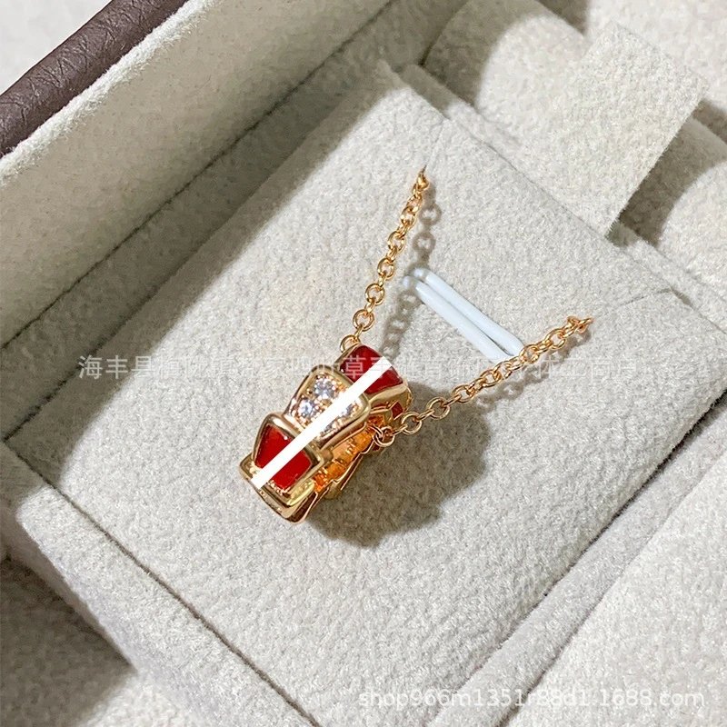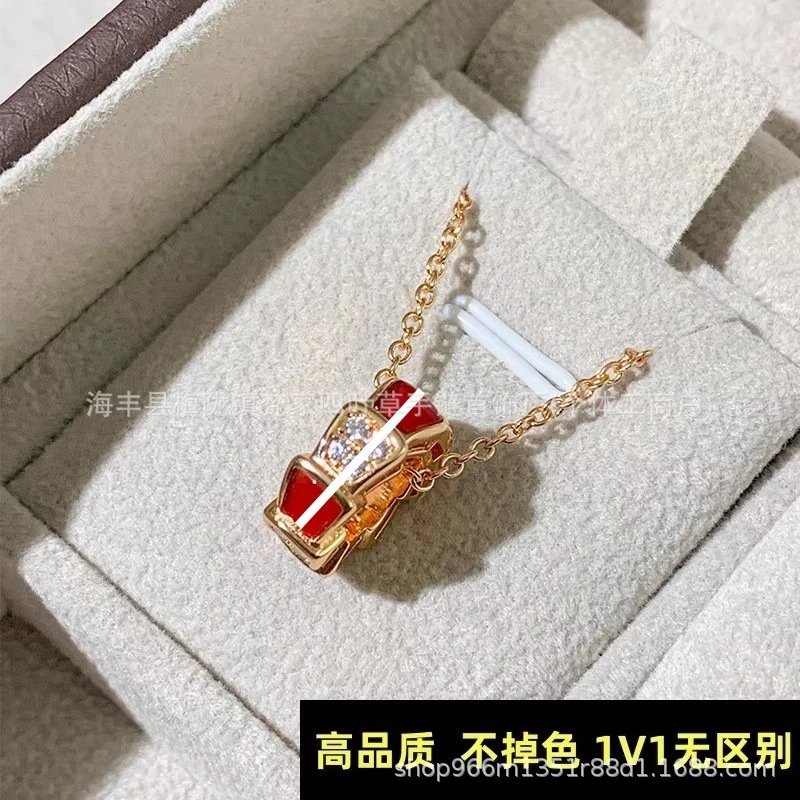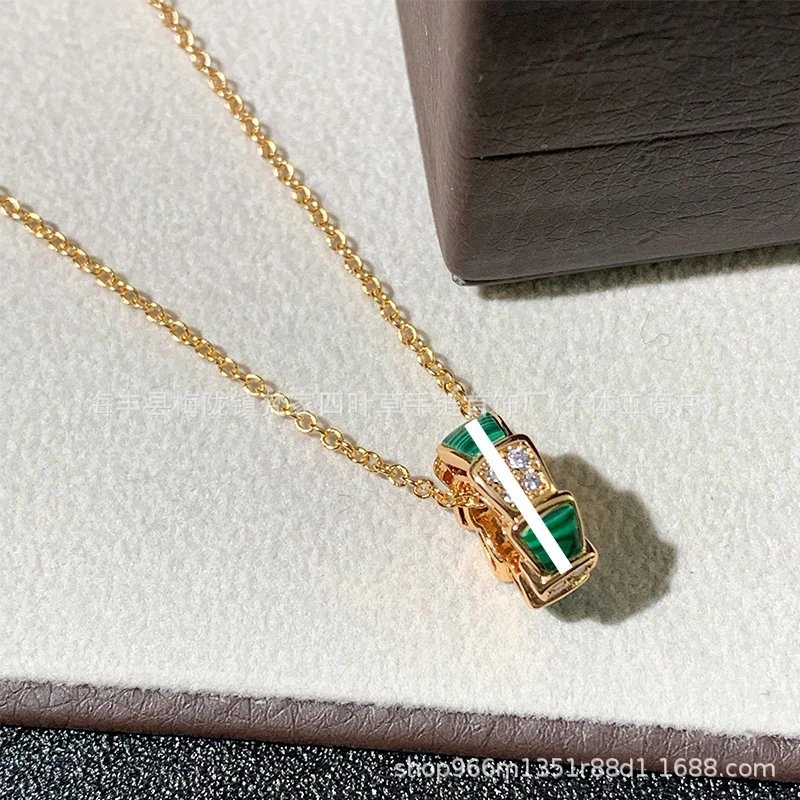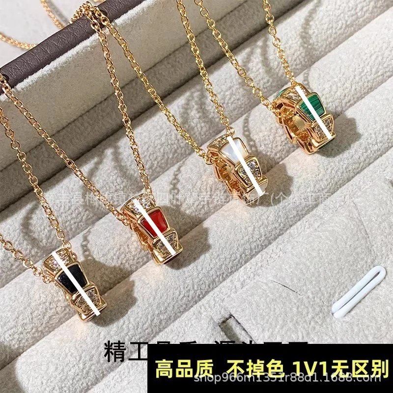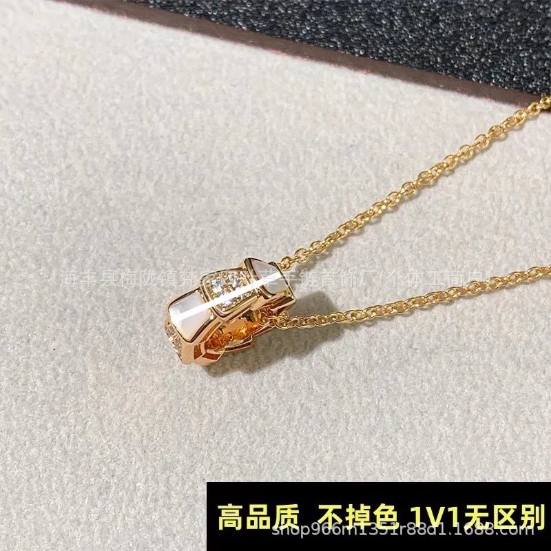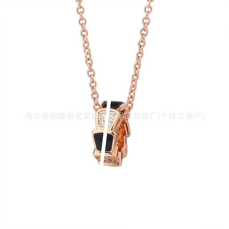宝家蛇骨镶钻白贝母项链女玫瑰金蛇形满钻锁骨链百搭轻奢代