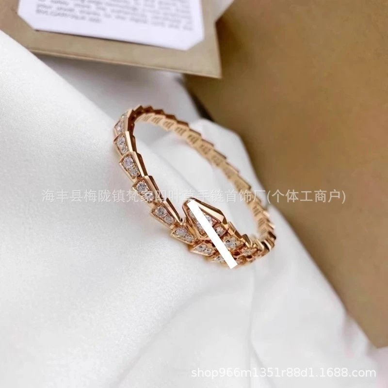 宝家新款玫瑰金蛇形手镯女奢华大气手链高品质蛇头手环超闪蛇骨潮