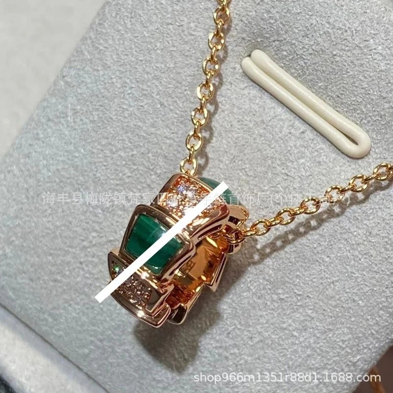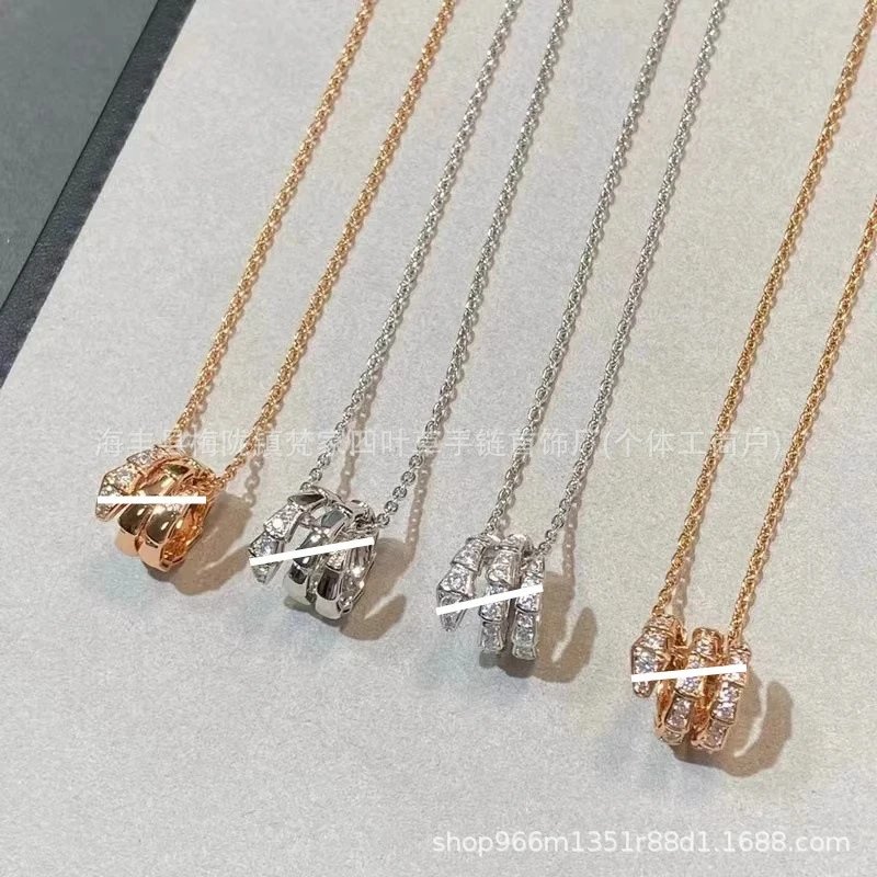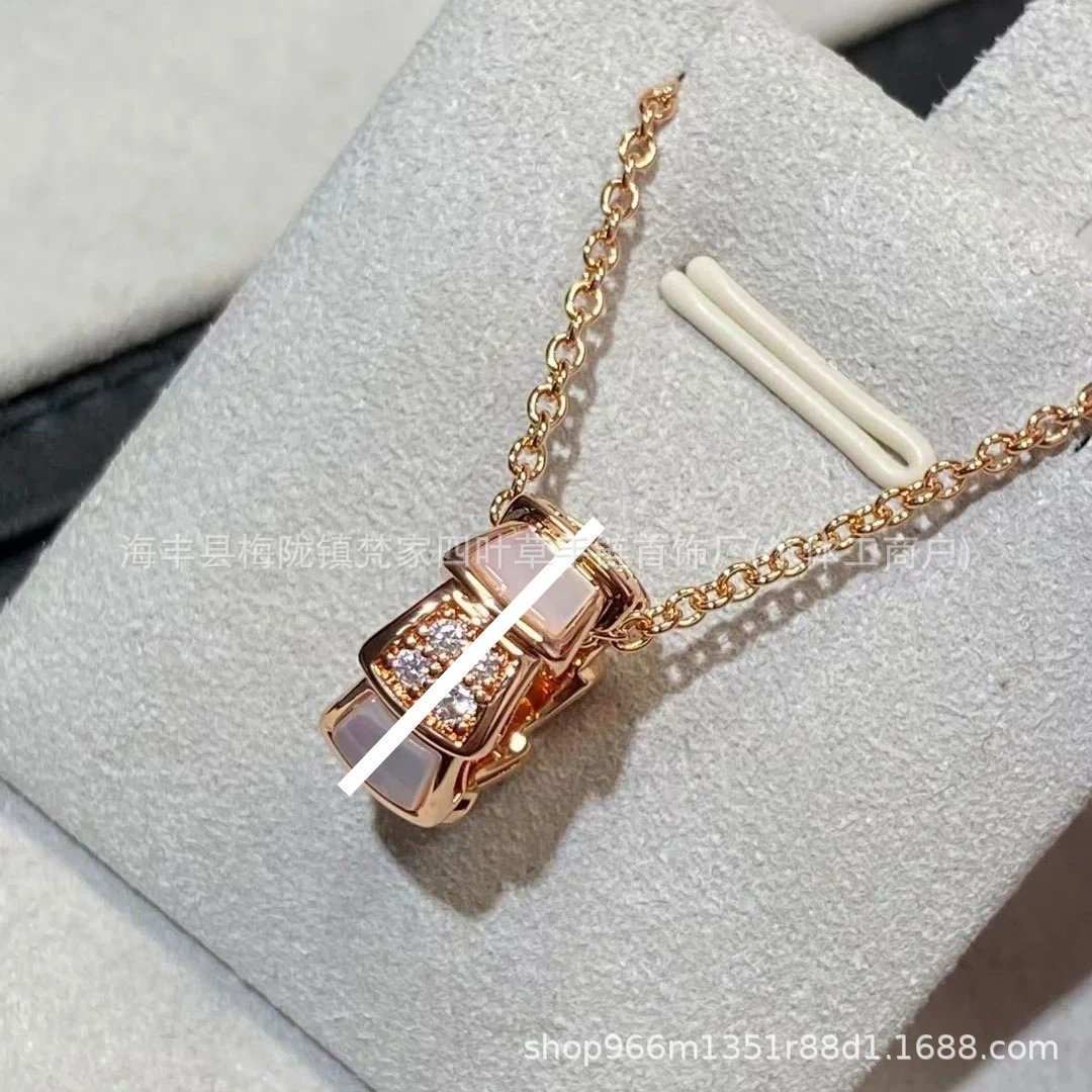 宝家蛇骨镶钻白贝母项链女玫瑰金蛇形满钻锁骨链百搭轻奢代