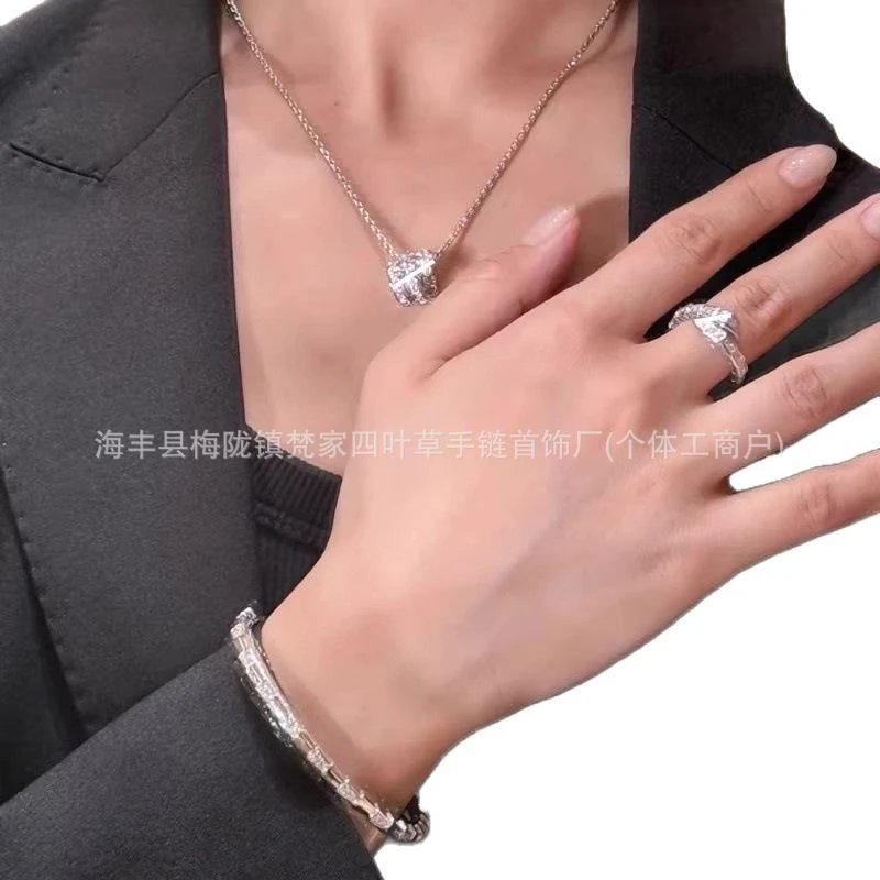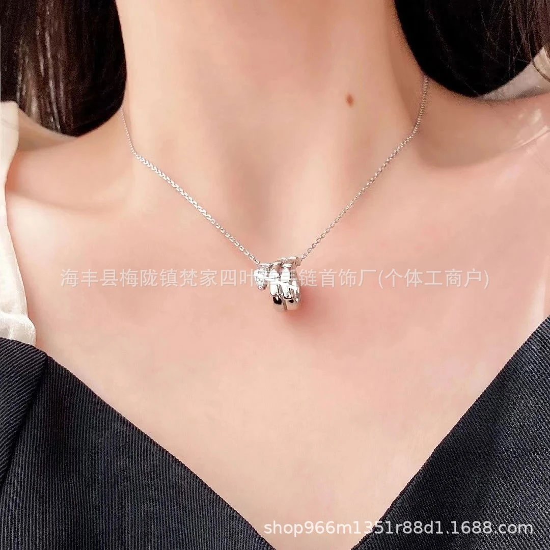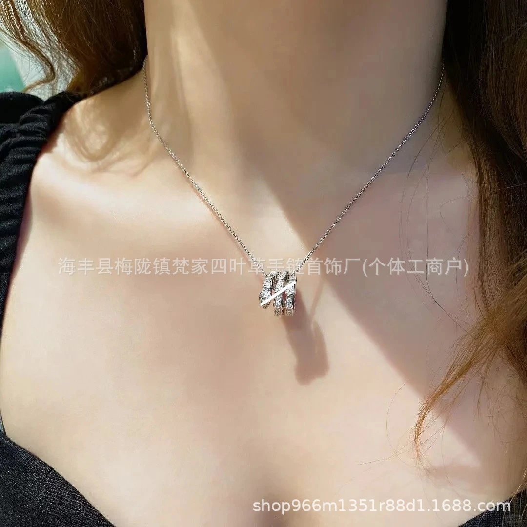 梵家四叶草项链纯银镀18K玫瑰金带钻锁骨吊坠银耀石镶钻蔷薇辉石