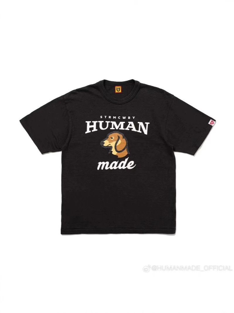 2024年夏季潮牌human 拉布拉多卡通图案印花短袖T恤男女款情