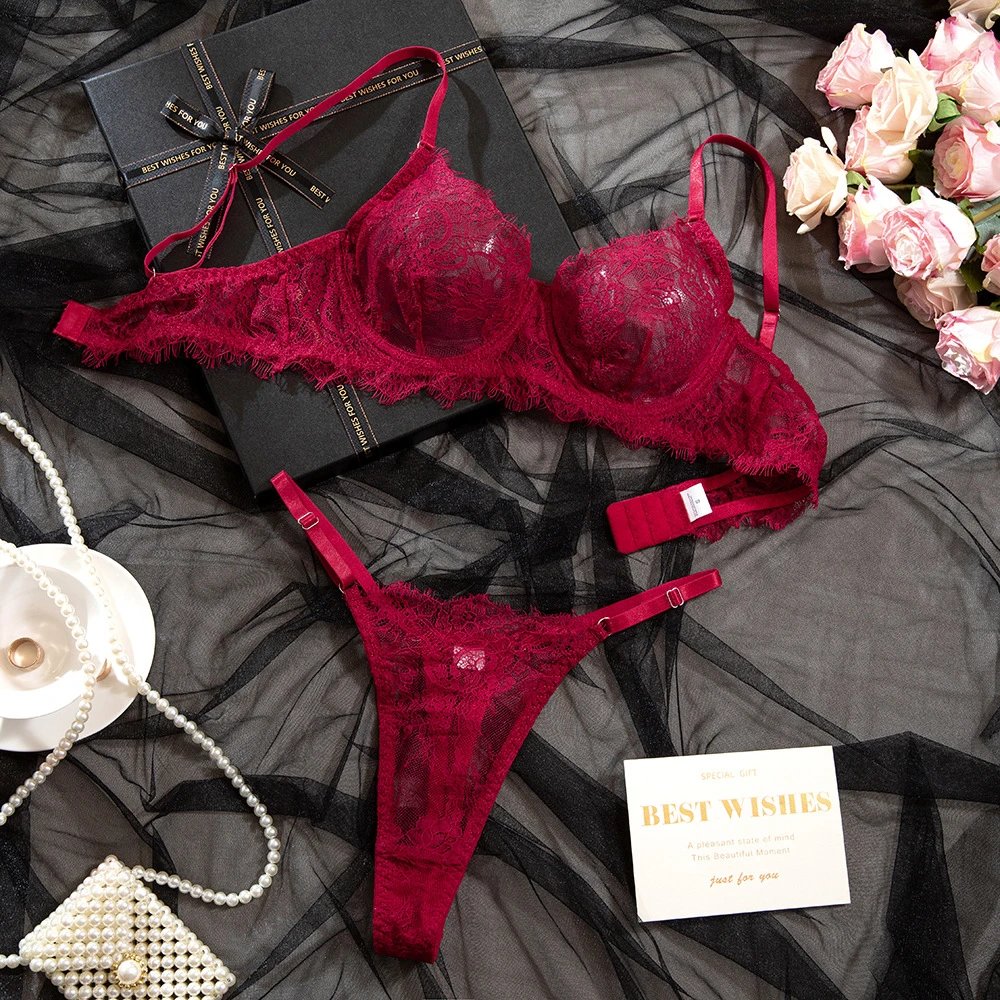 2025夏季轻薄蕾丝透气聚拢性感女士内衣大胸显小文胸套装