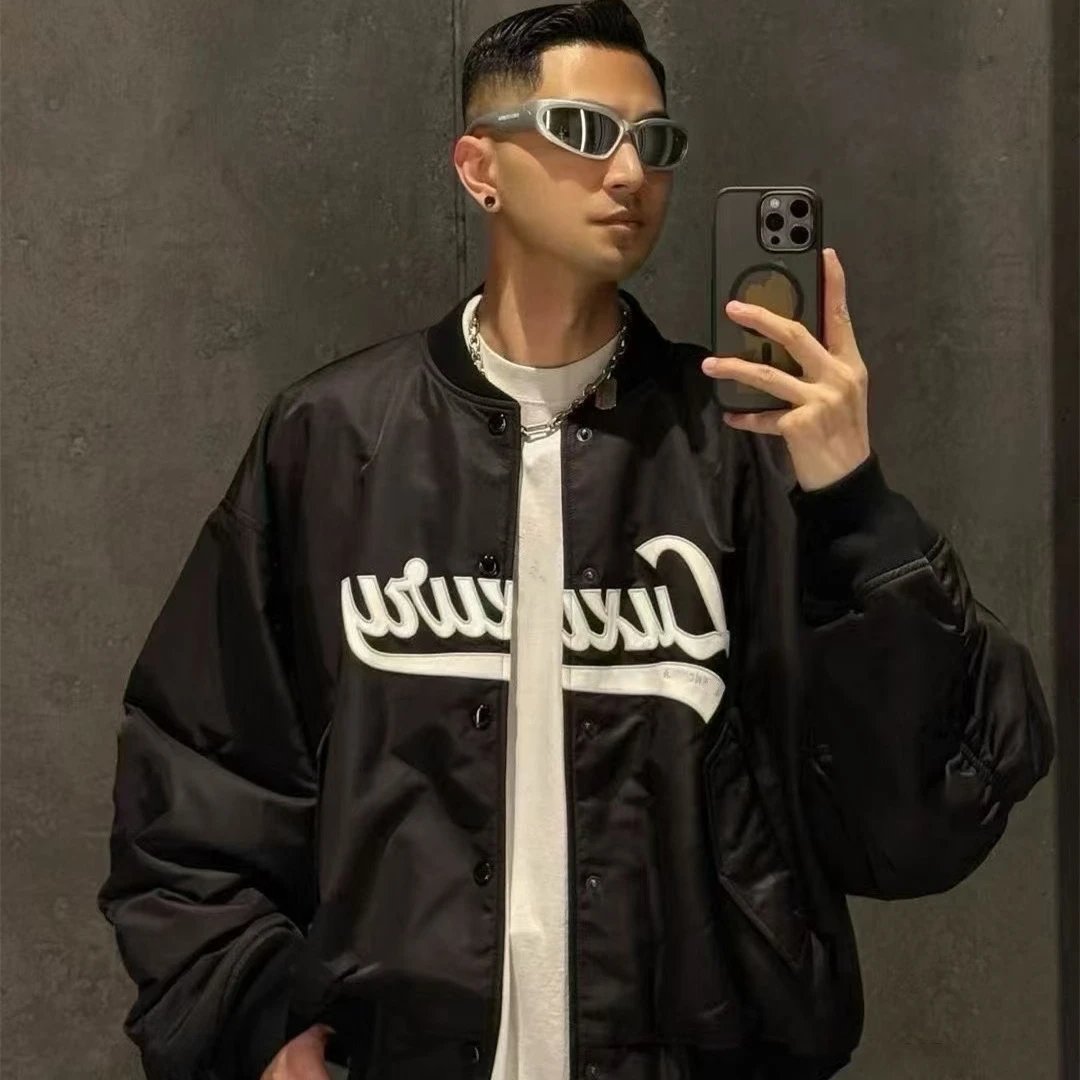 2025秋冬新款巴黎B家字母刺绣飞行棉服夹克外套男女