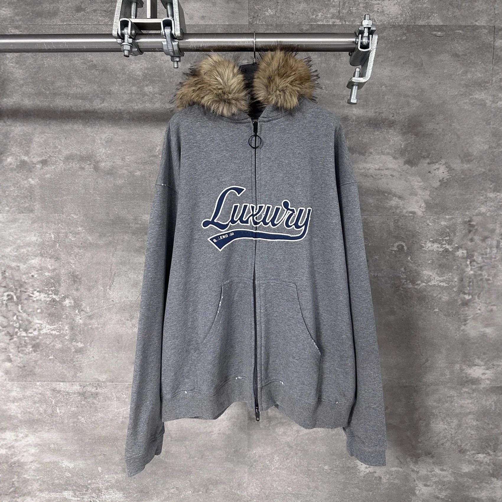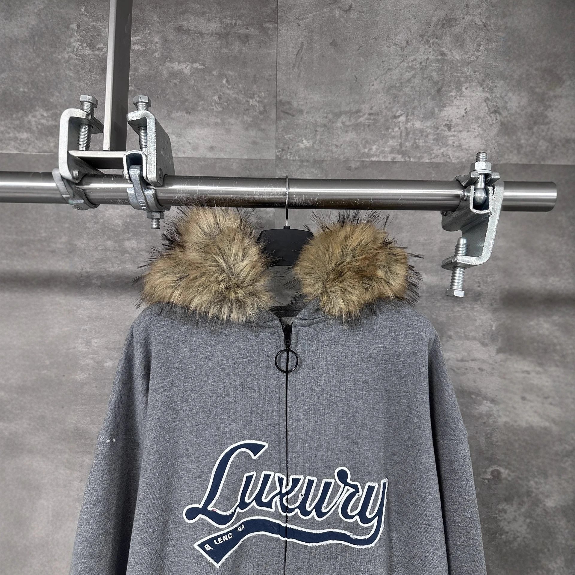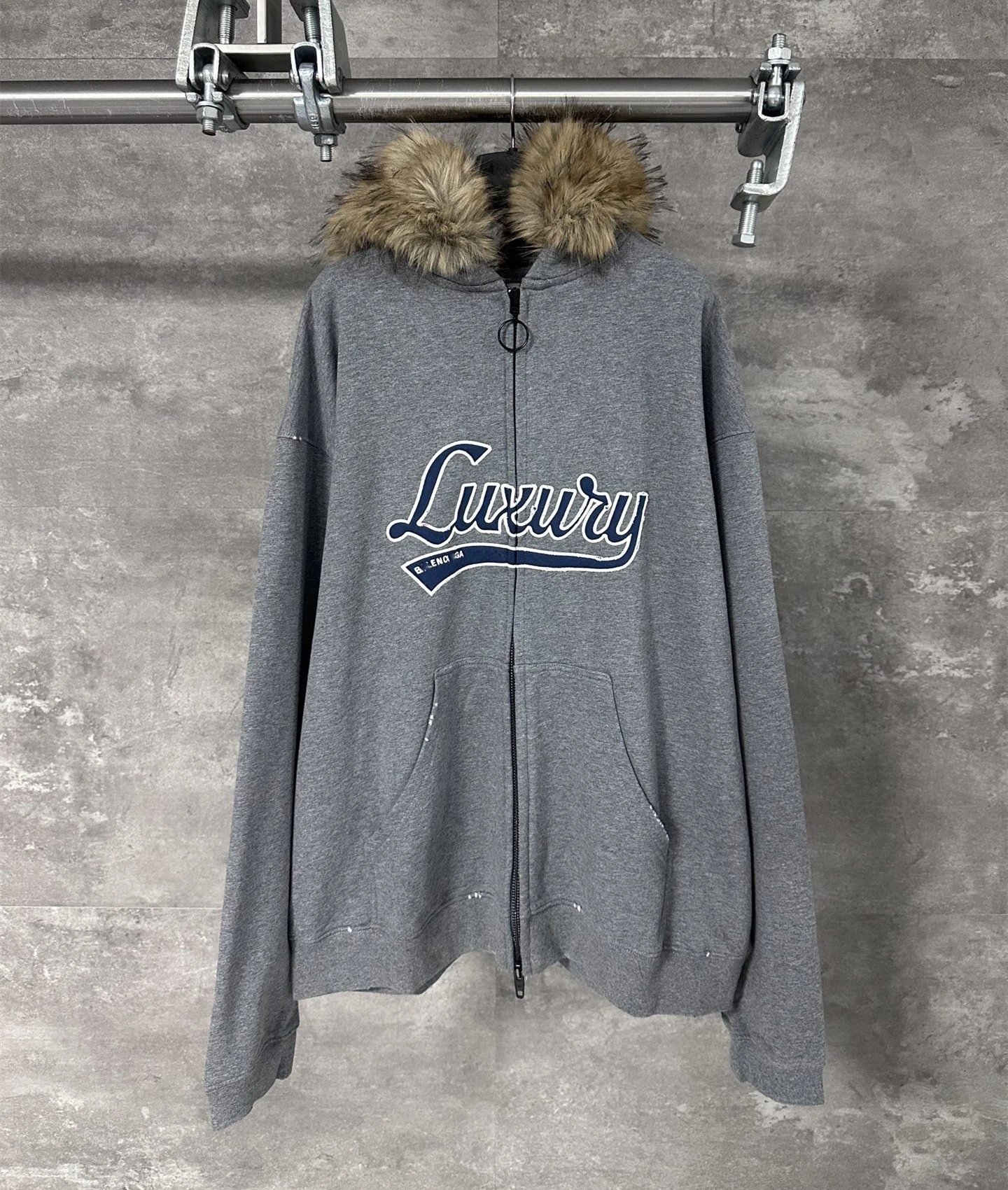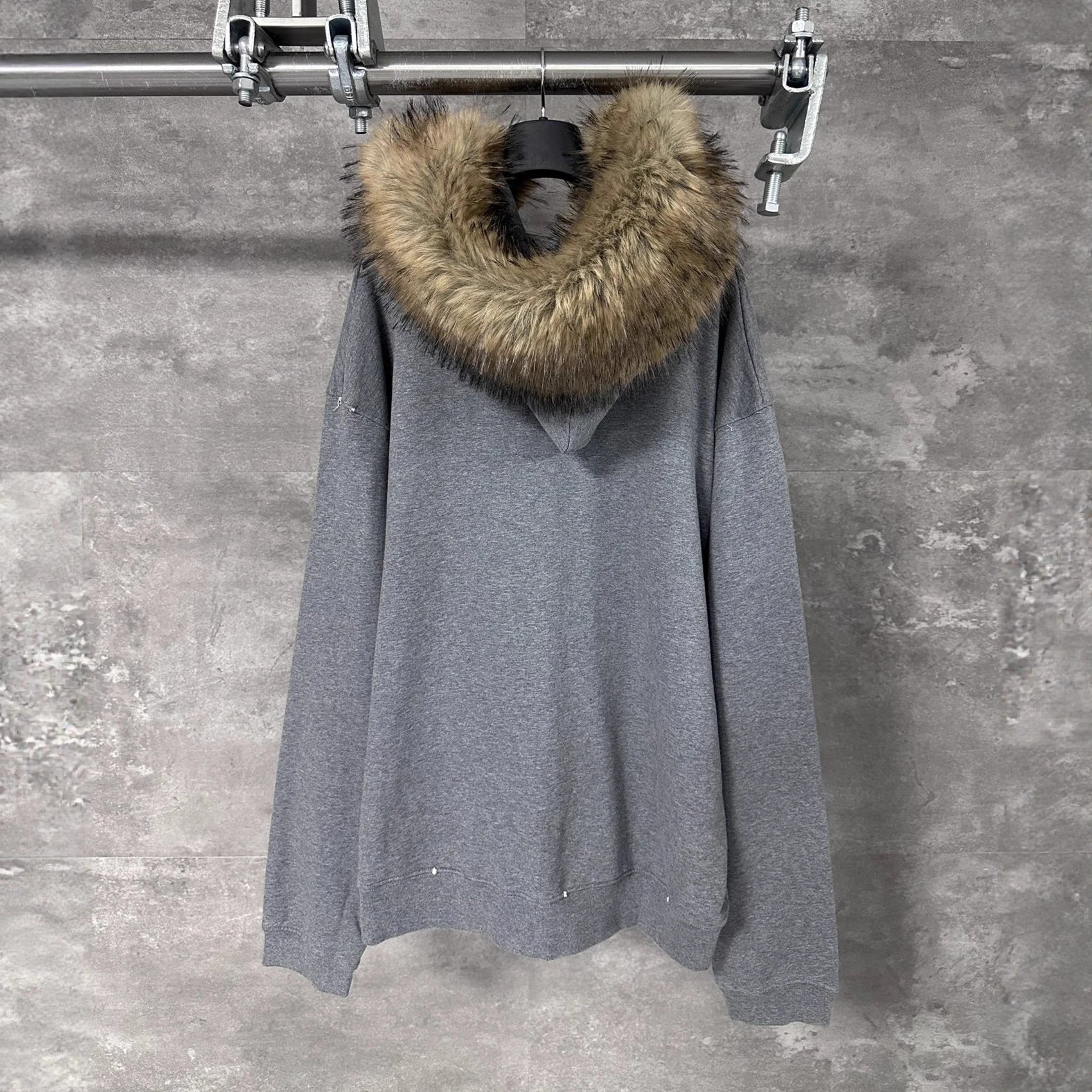 2025秋冬新款巴黎B家毛领拉链连帽抓毛卫衣拉链夹克外套男女