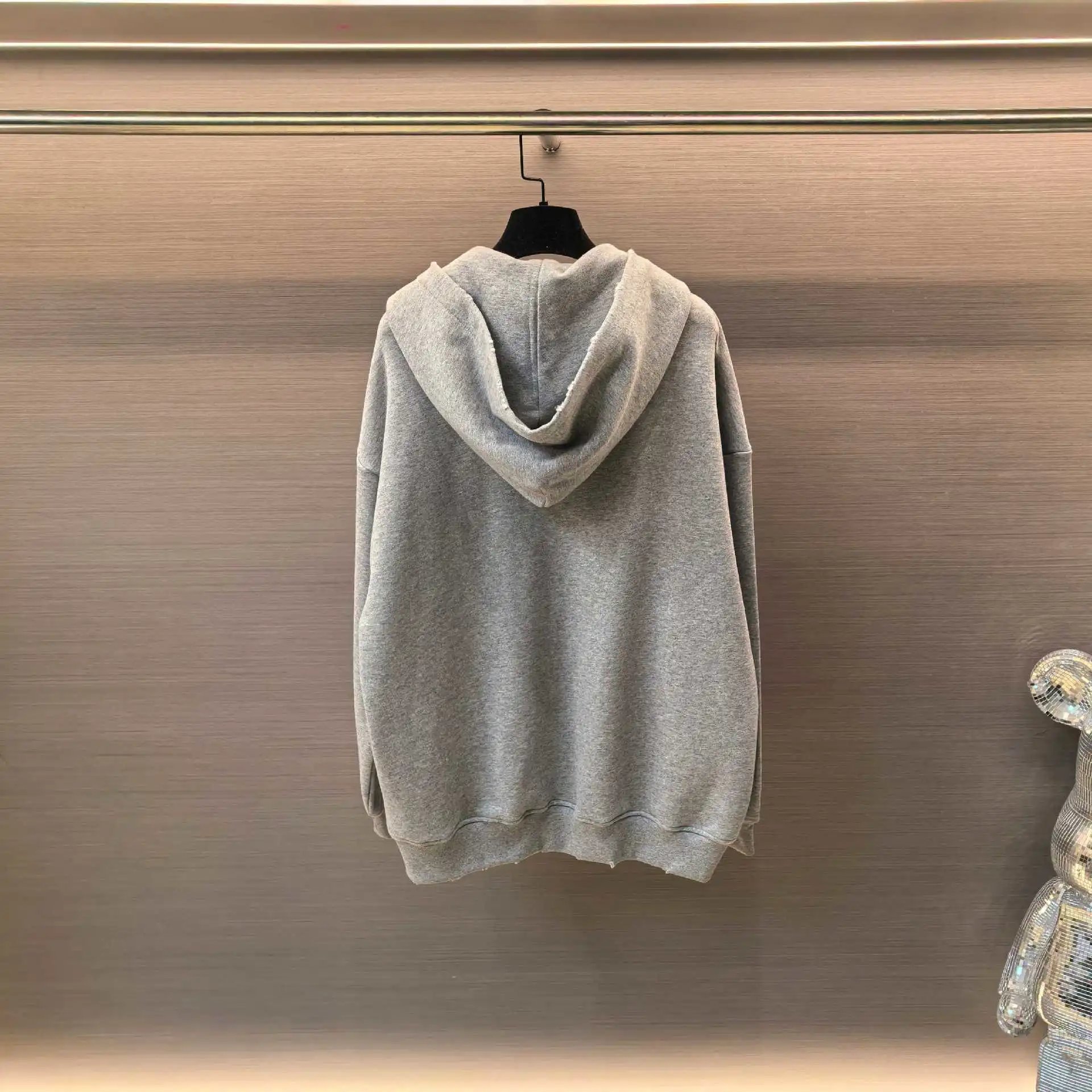 2025秋冬新款巴黎B家拼皮刺绣松弛灰磨破卫衣外套男女