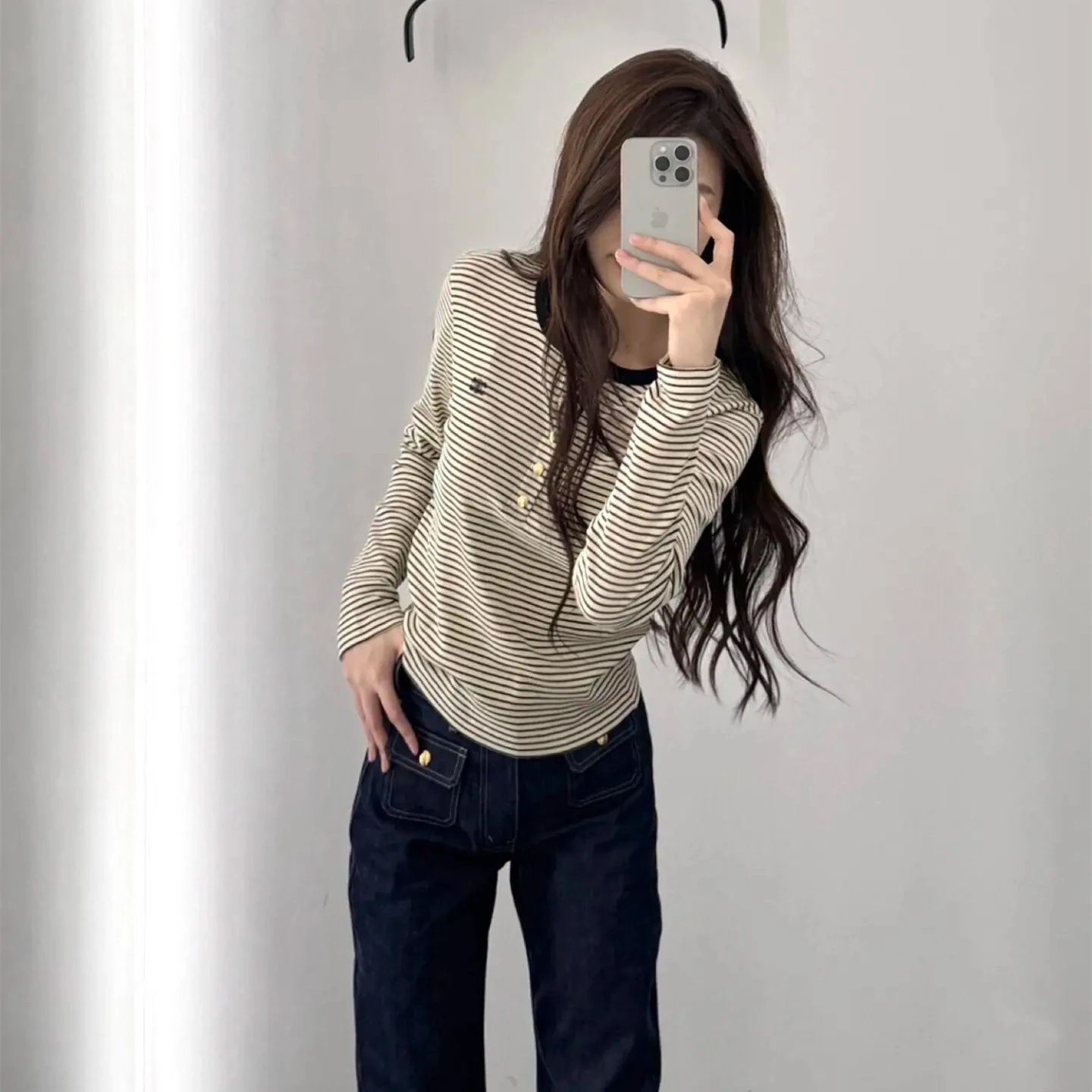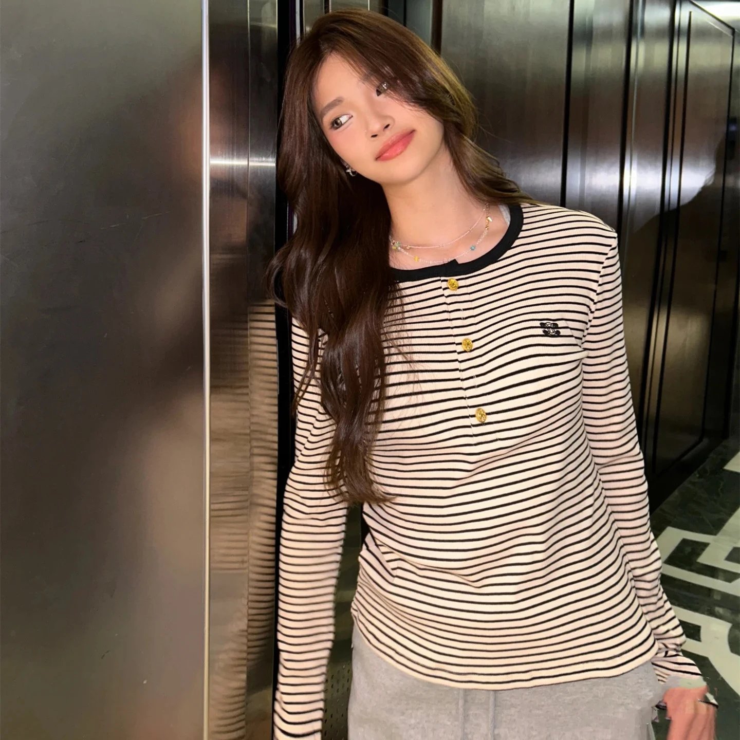 2025早秋新款CE家款刺绣条纹撞色长袖T恤打底衫