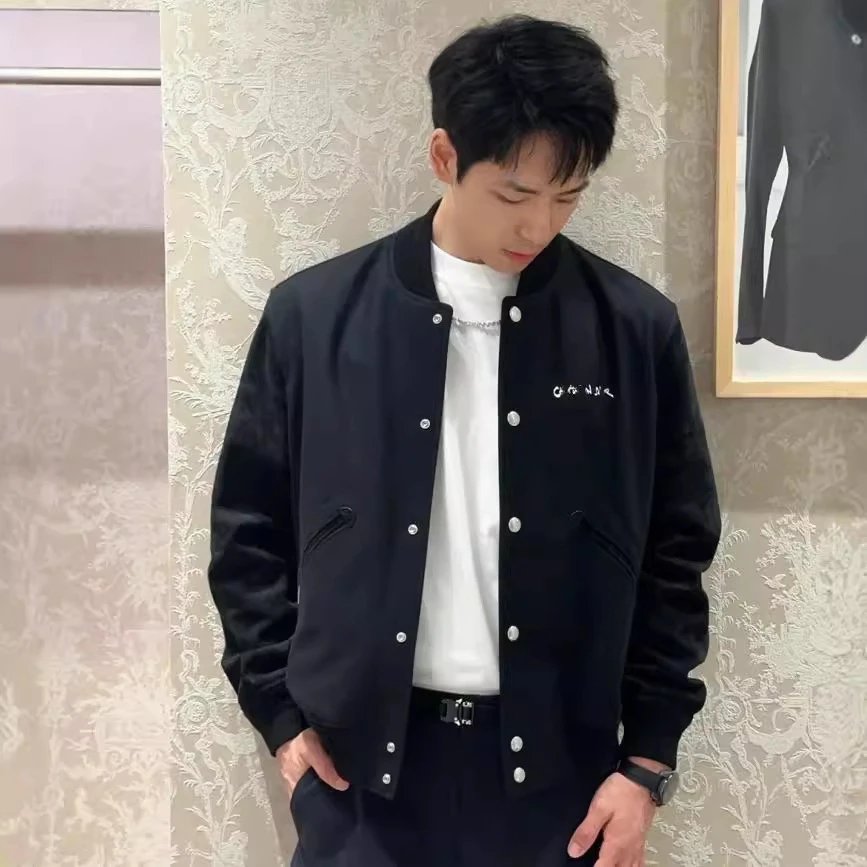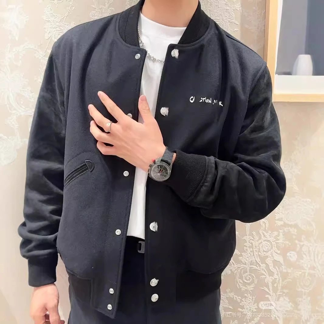 2025秋冬新款DI家字母刺绣LOGO纯色棒球服夹克外套男