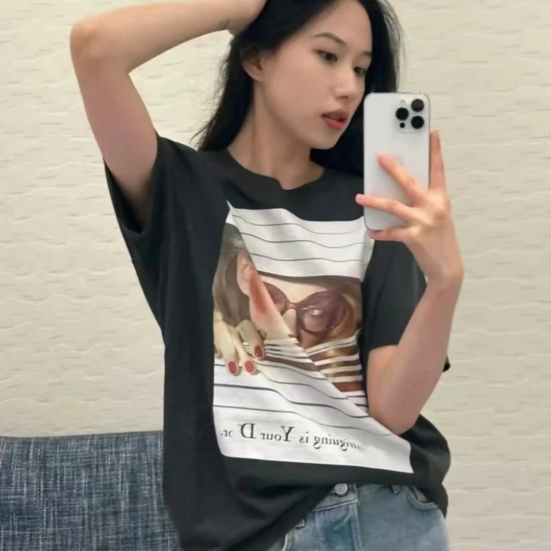 2025夏季新款DO家杂志封面印花宽松短袖T恤打底衫男女