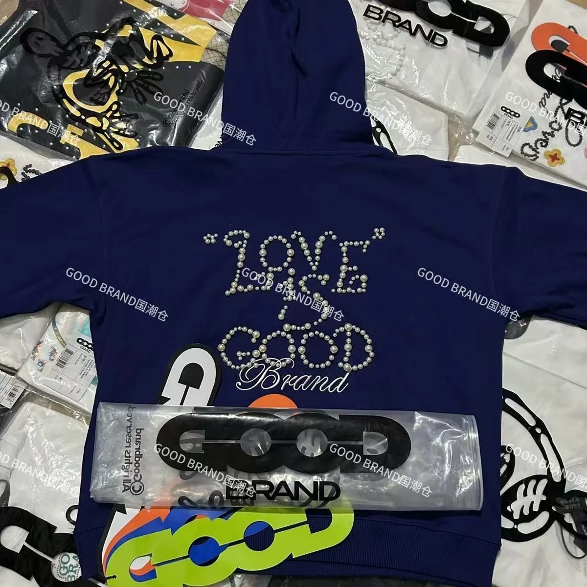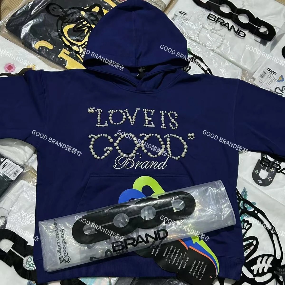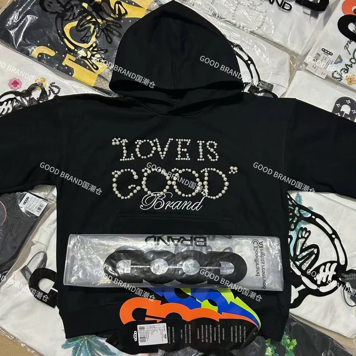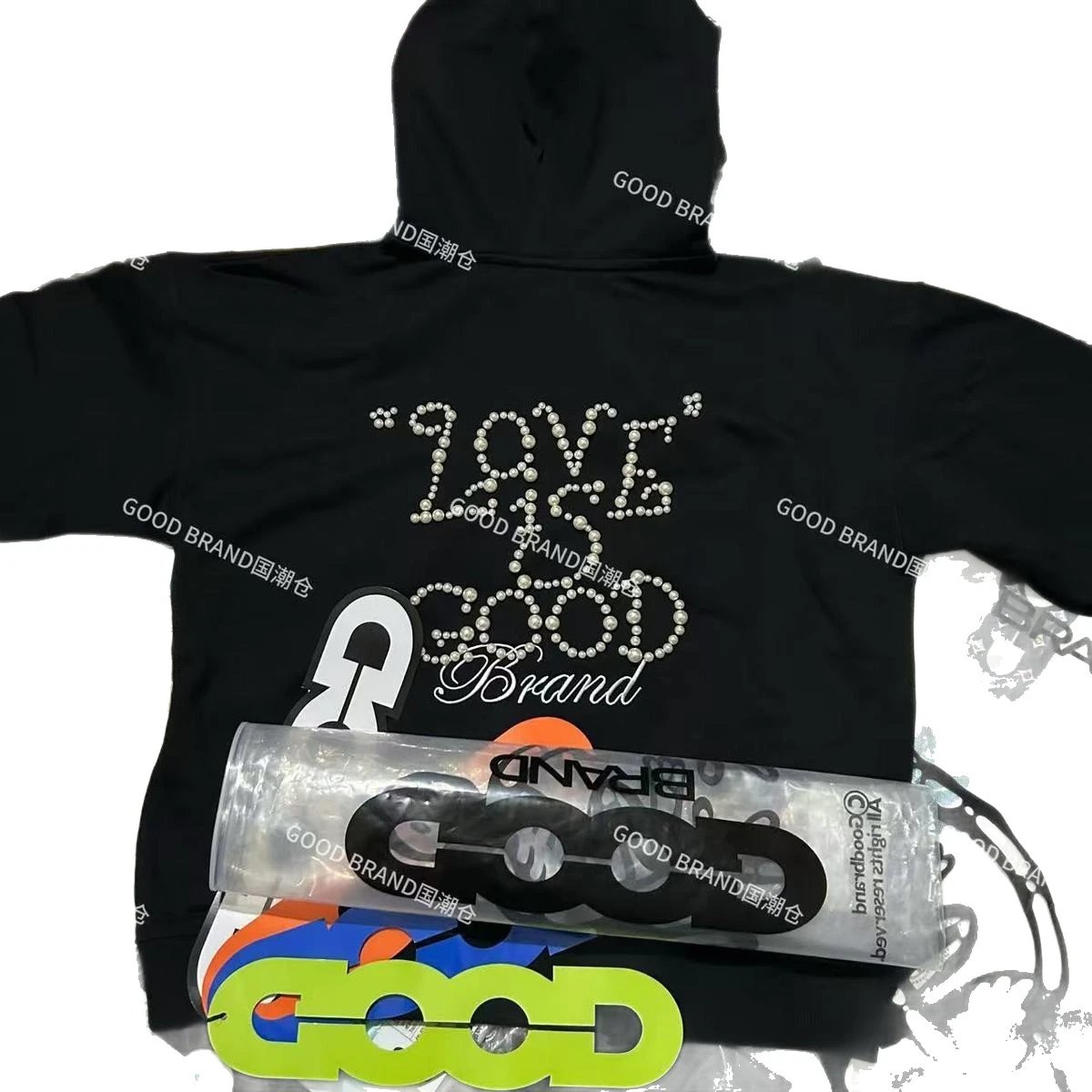 2025秋冬新款GOOD珍珠标绣花百搭连帽重磅卫衣男女