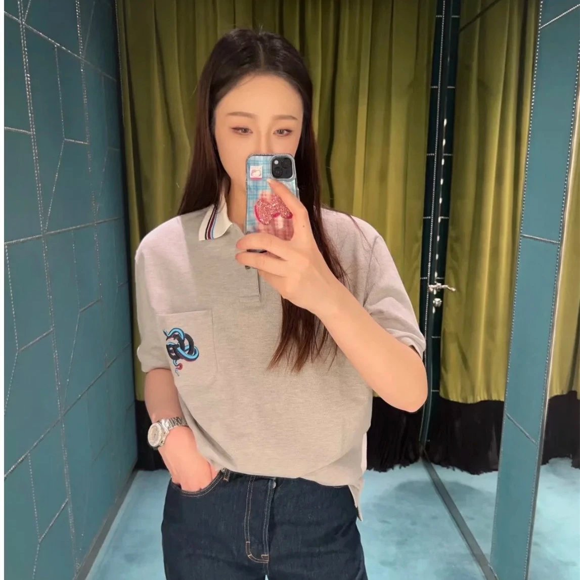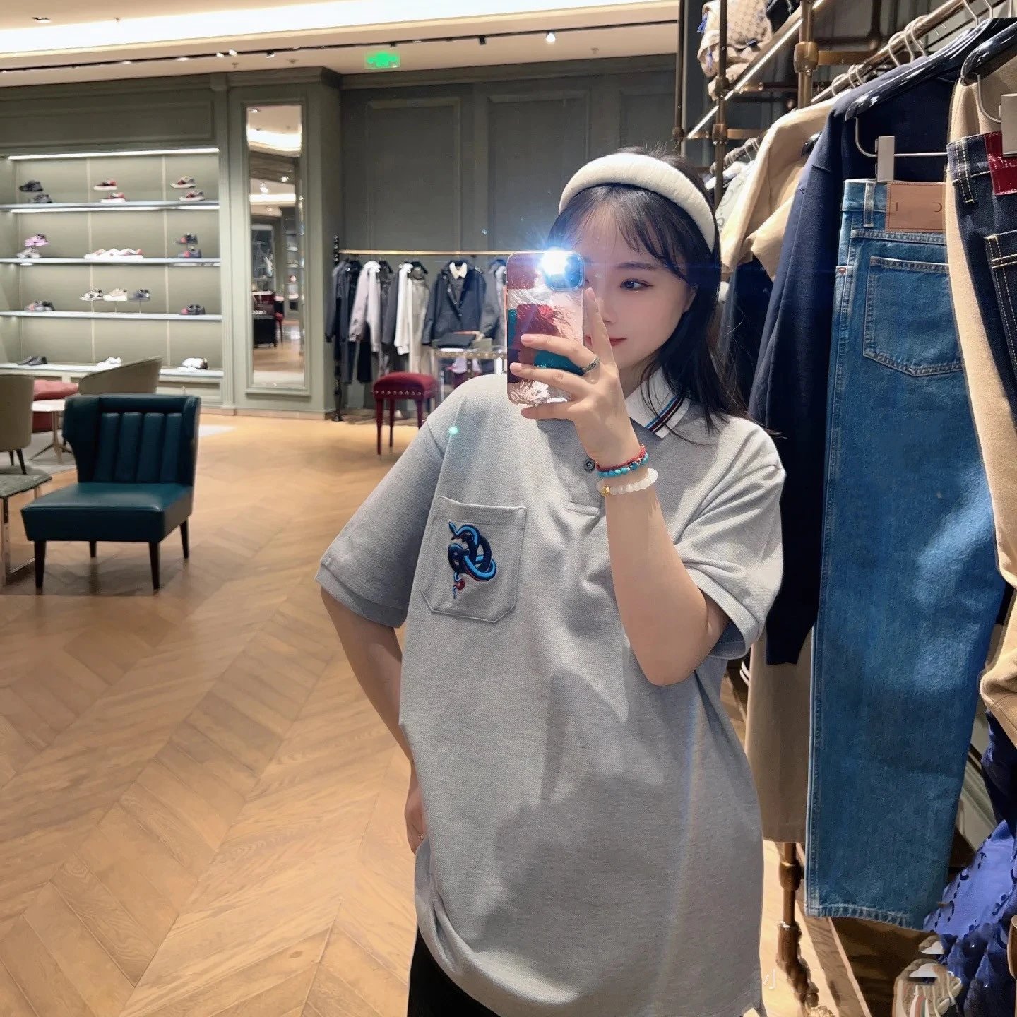 2025夏季新款GU家蛇年限定 珠地棉翻领短袖T恤打底衫男女