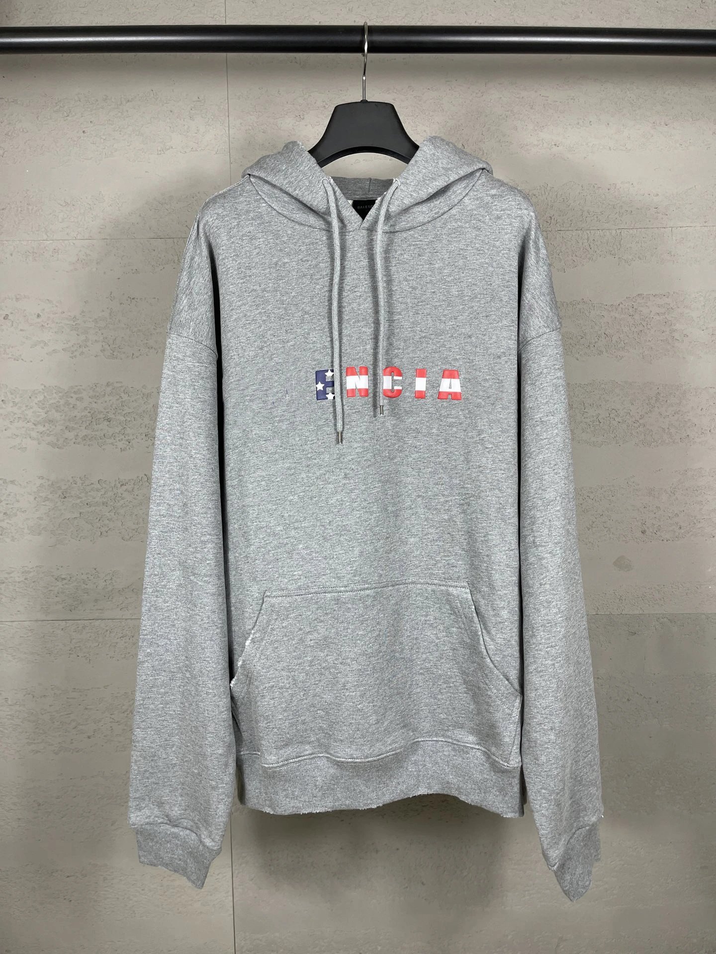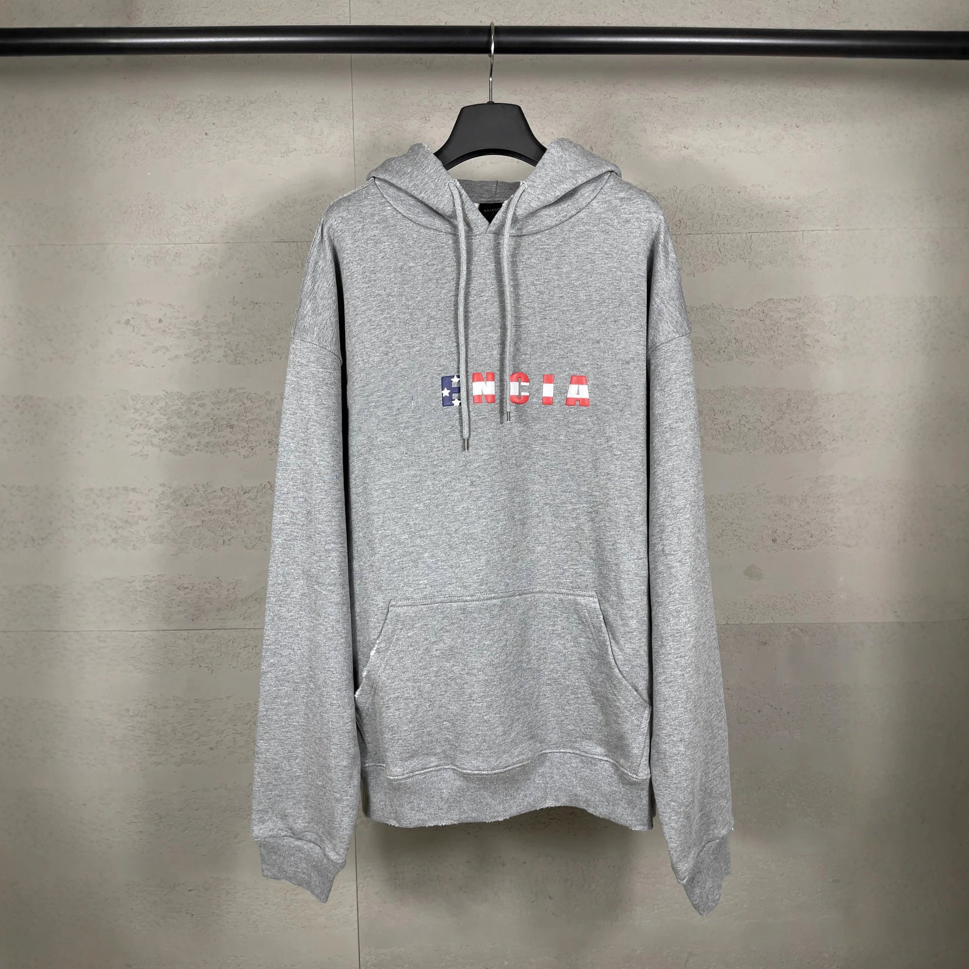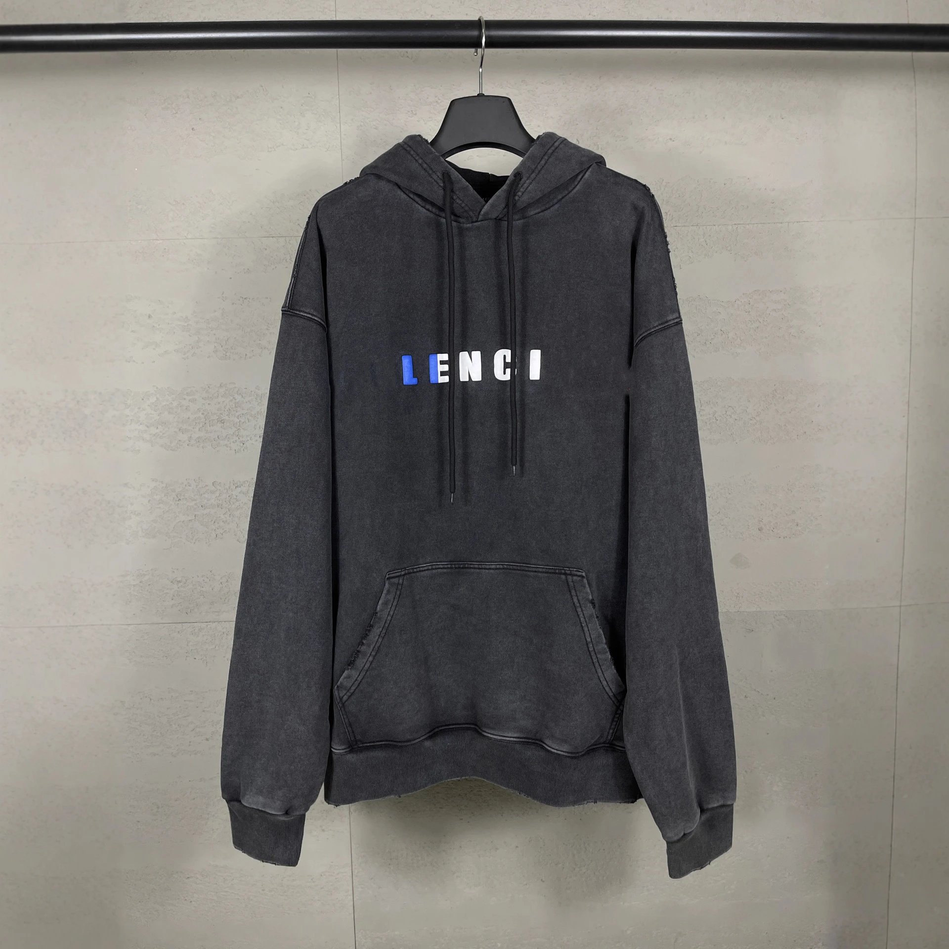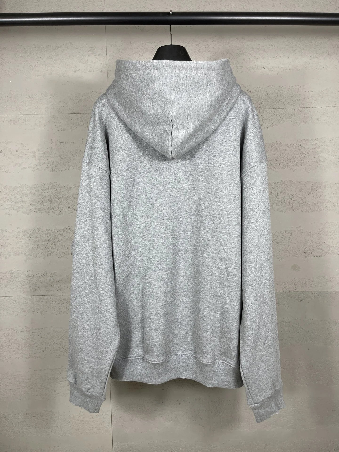 2025秋冬巴黎英文彩色LOGO发泡印花水洗磨烂做旧连帽卫衣宽松男款