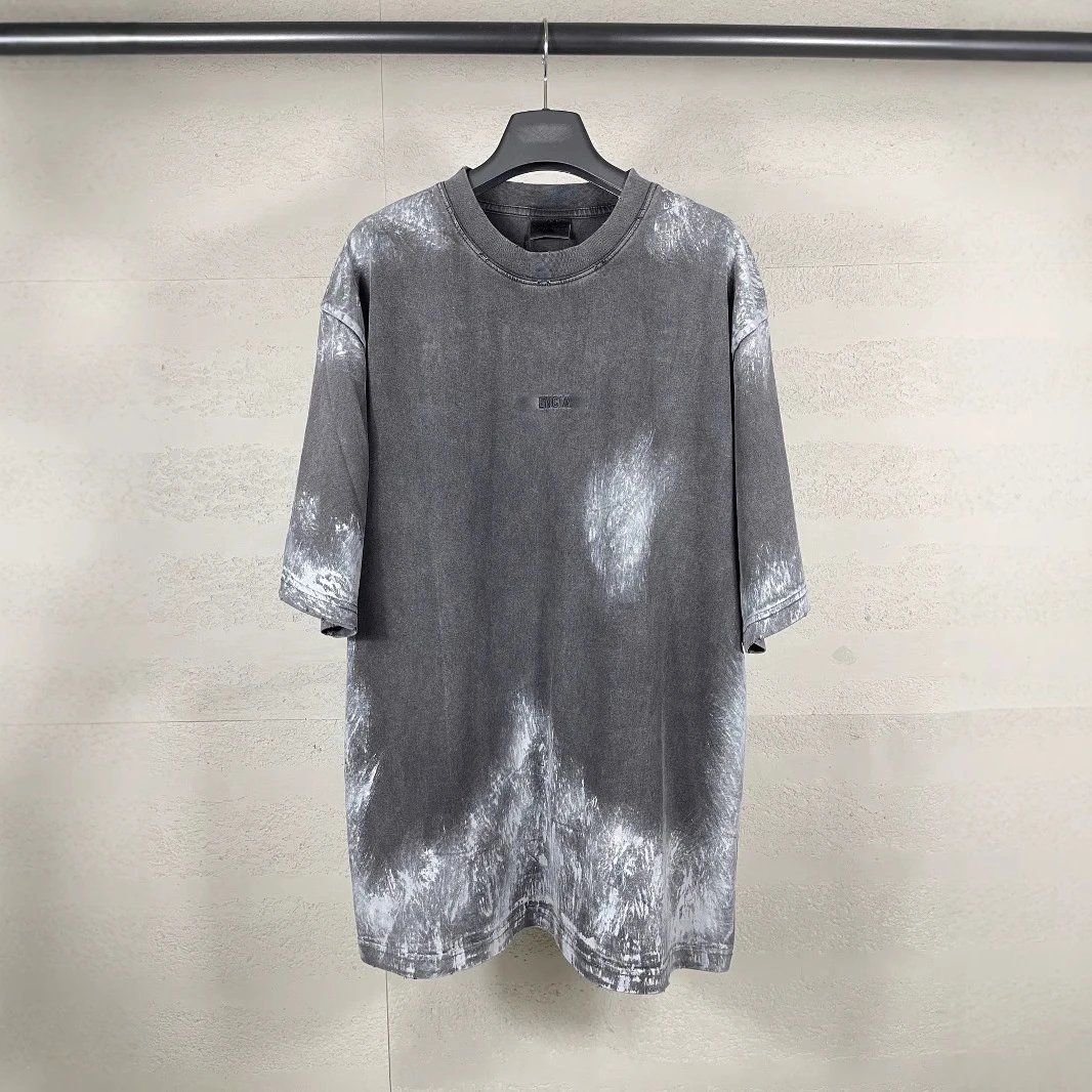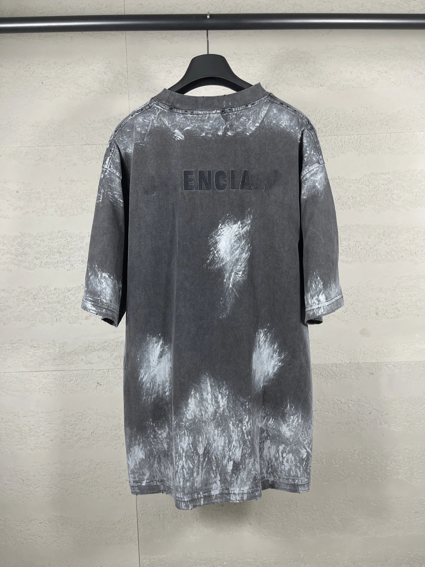 2025夏季巴黎前后字母LOGO刺绣手绘涂鸦洗水磨烂做旧短袖T恤