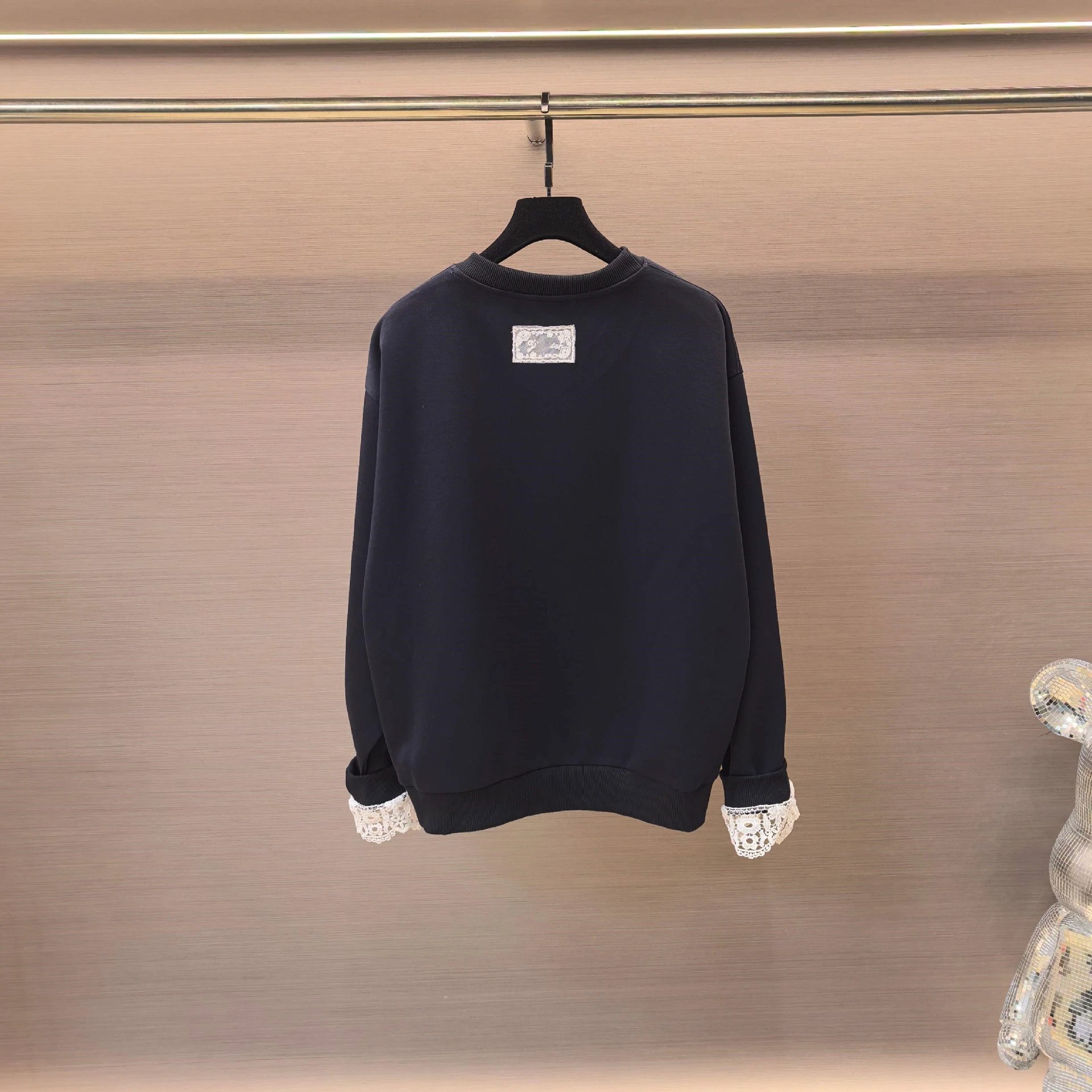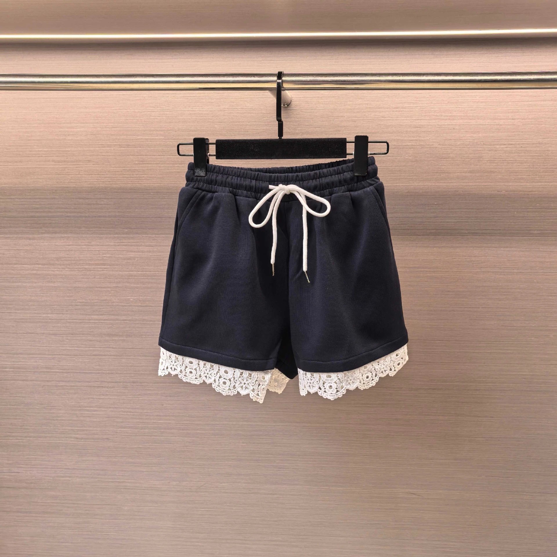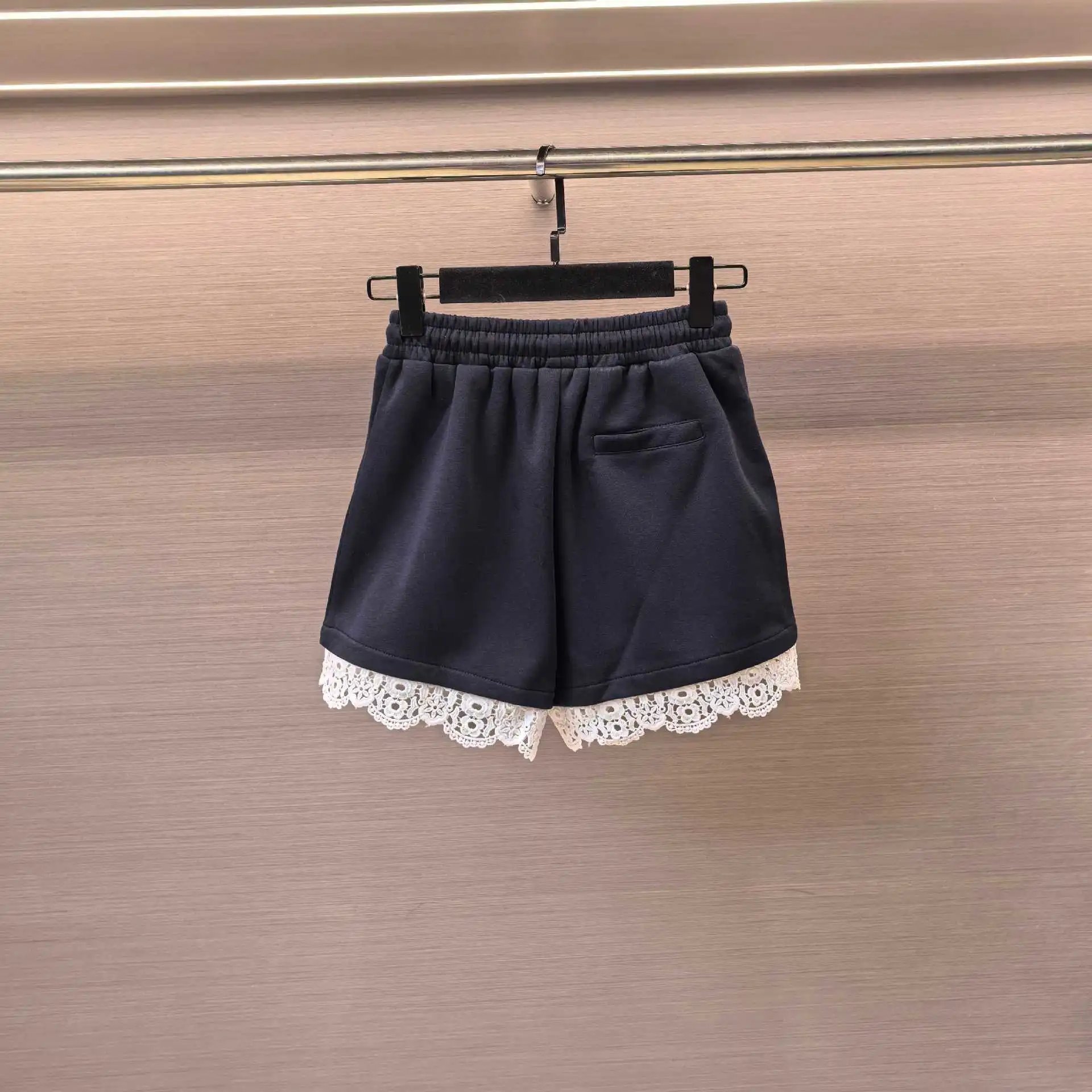 2025早秋新款MIU缪家极简蕾丝花边拼接长袖卫衣短裤套装女装