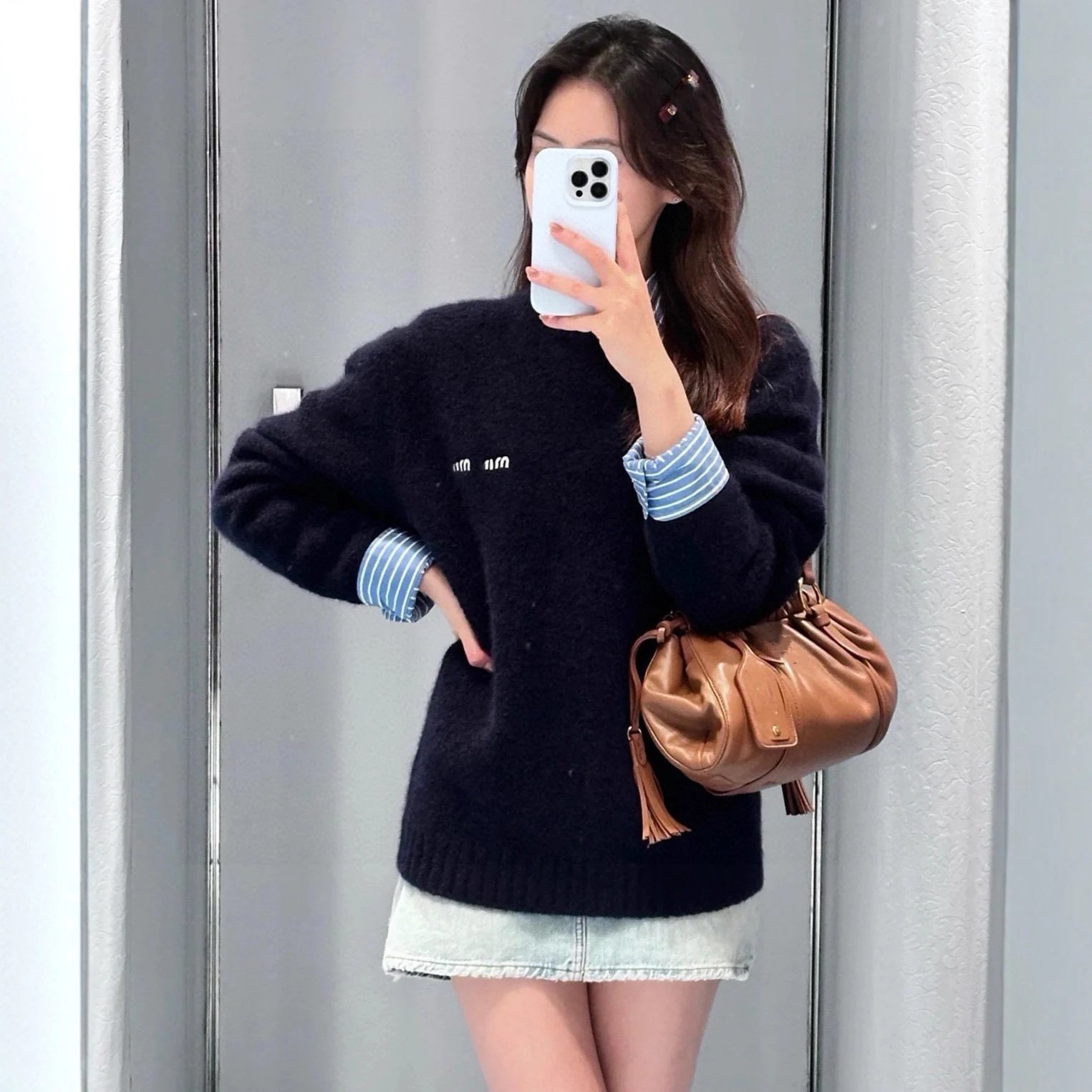 本2025秋冬新款MIU缪家小刺绣泰迪圆领套头毛衣男女