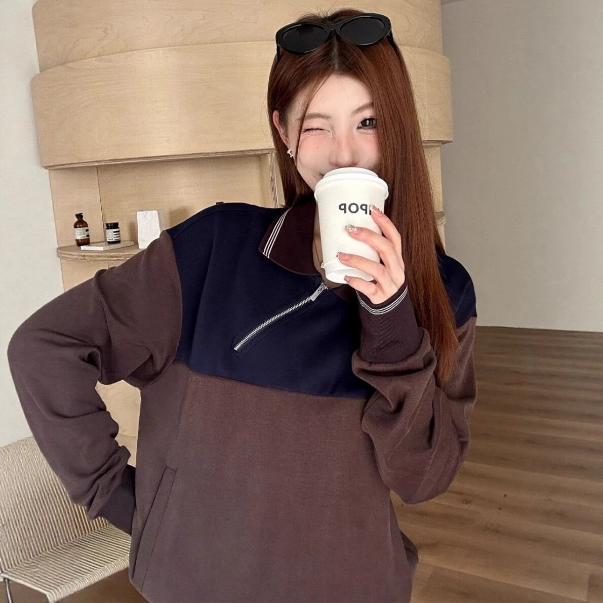 2025秋冬新款MIU缪家拼接撞色长袖侧边拉链卫衣男女