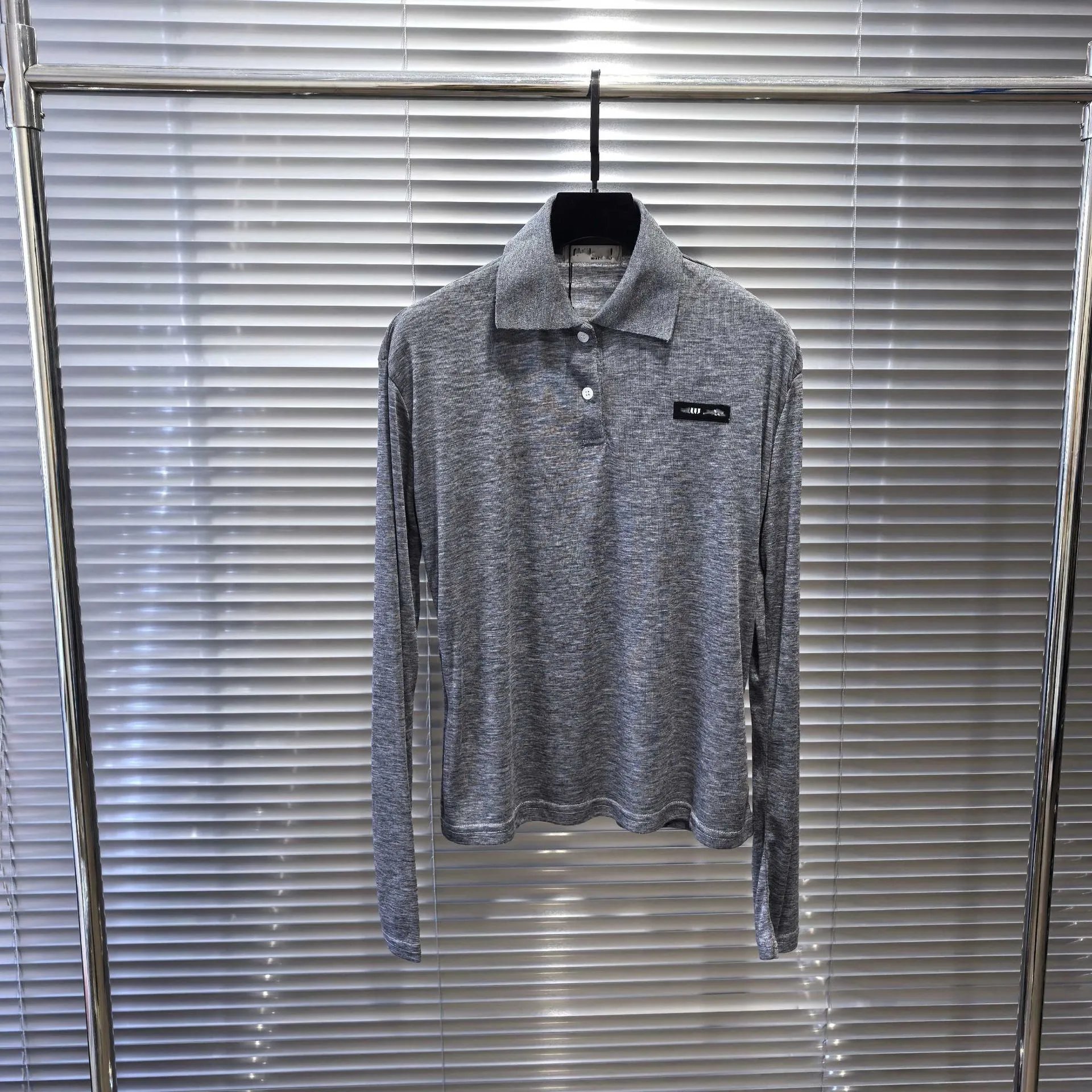 2025新款MIU家刺绣字母polo衫翻领长袖防晒上衣女士
