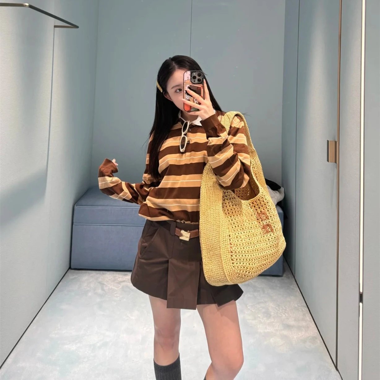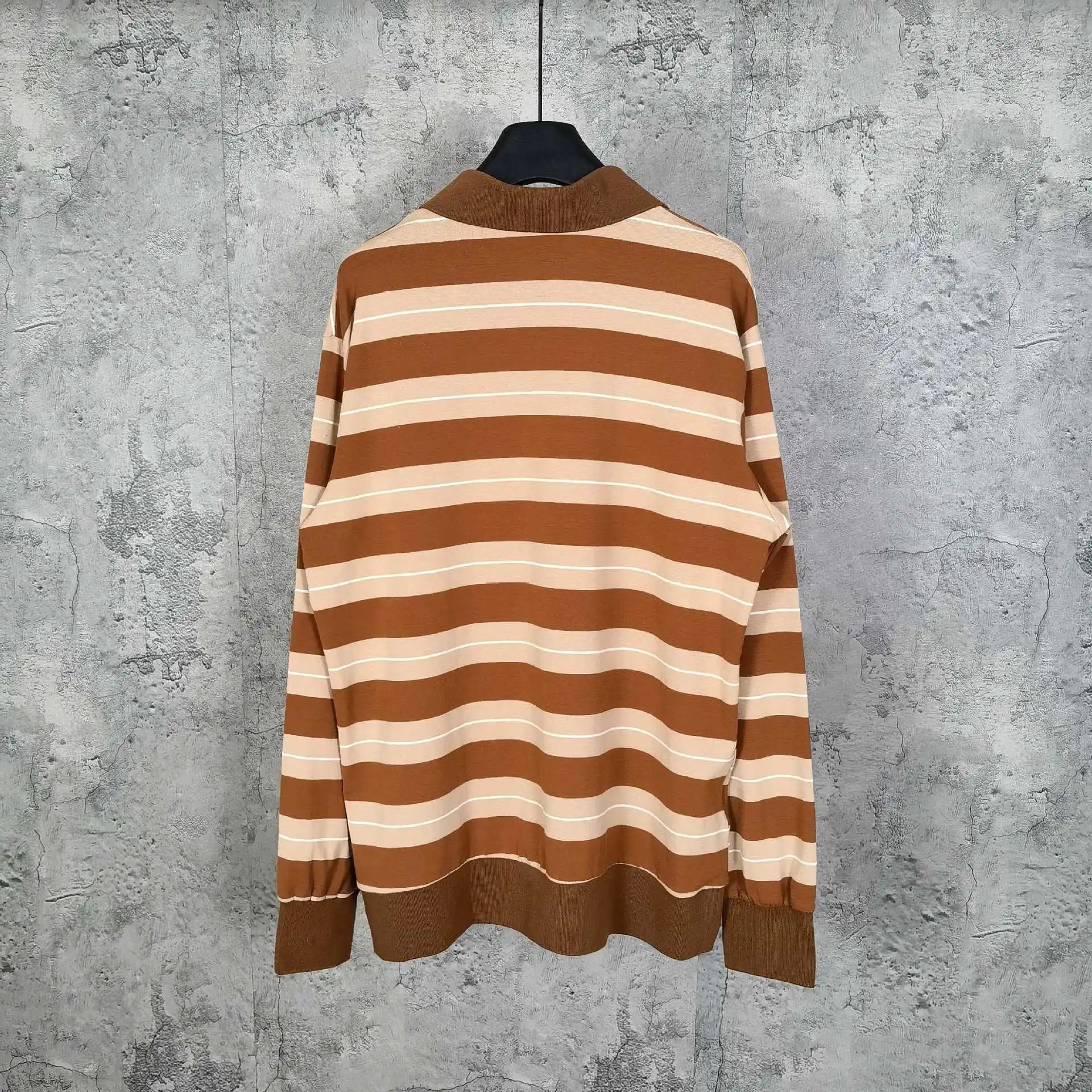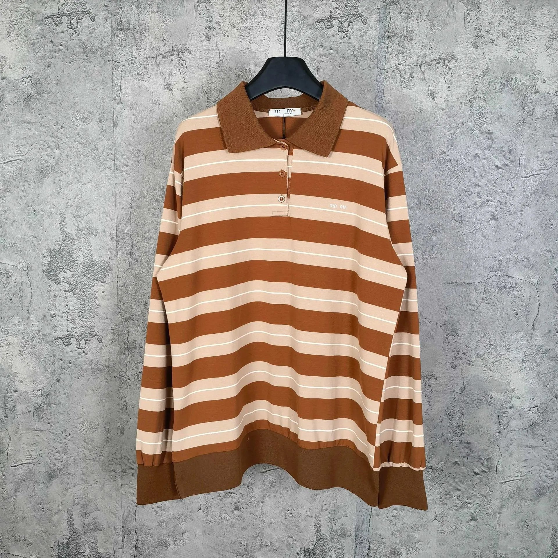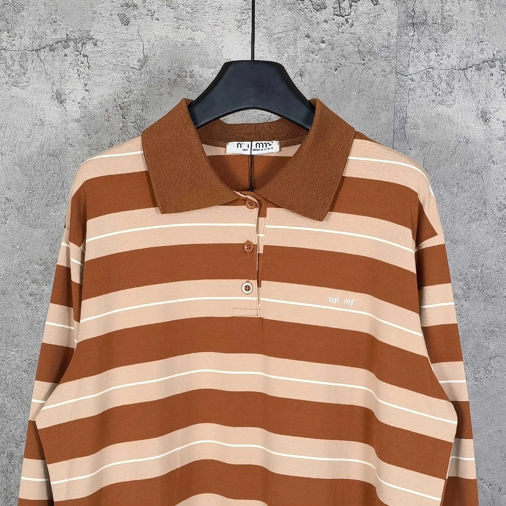 2025新款MIU缪家标识字母刺绣卡其色条纹翻领polo衫