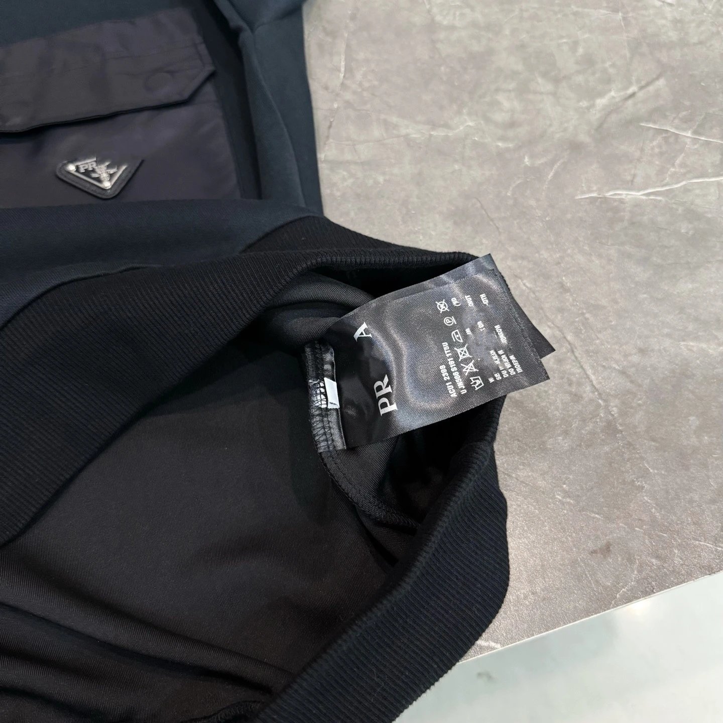 2025秋冬新款P家三角铁标拼接口袋圆领毛圈卫衣男女
