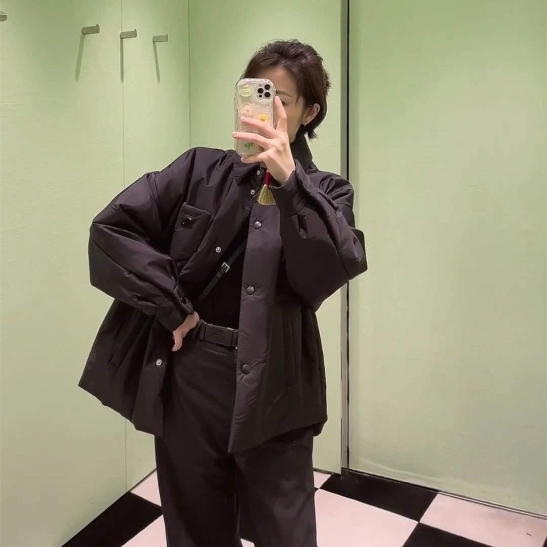 2025秋冬新款P家网红款长袖拉链翻领羽绒棉棉服夹克外套