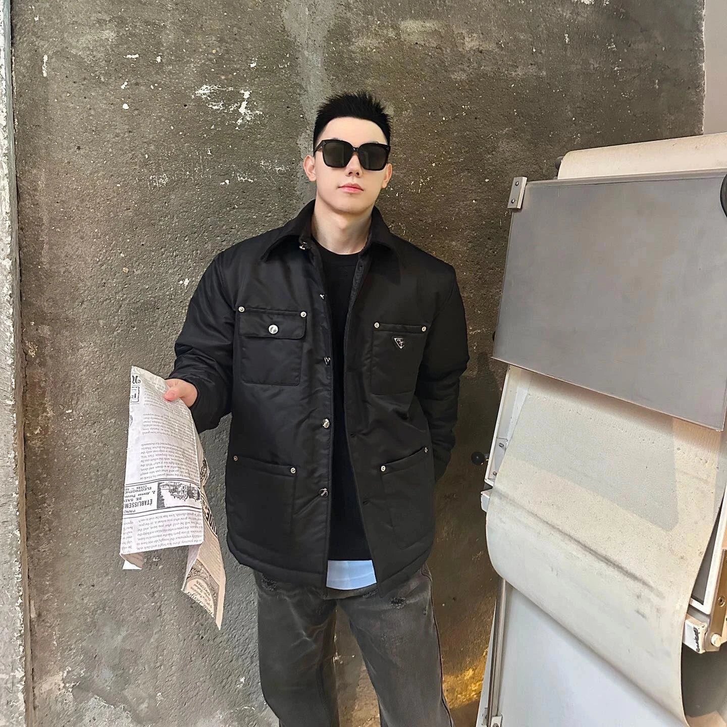 2025秋冬新款P家网红款三角铁标翻盖棉服夹克外套男女
