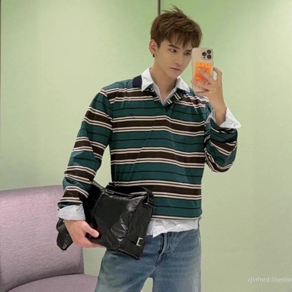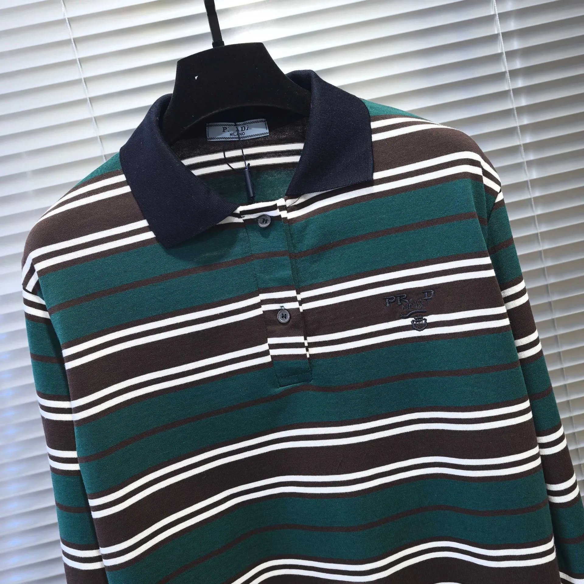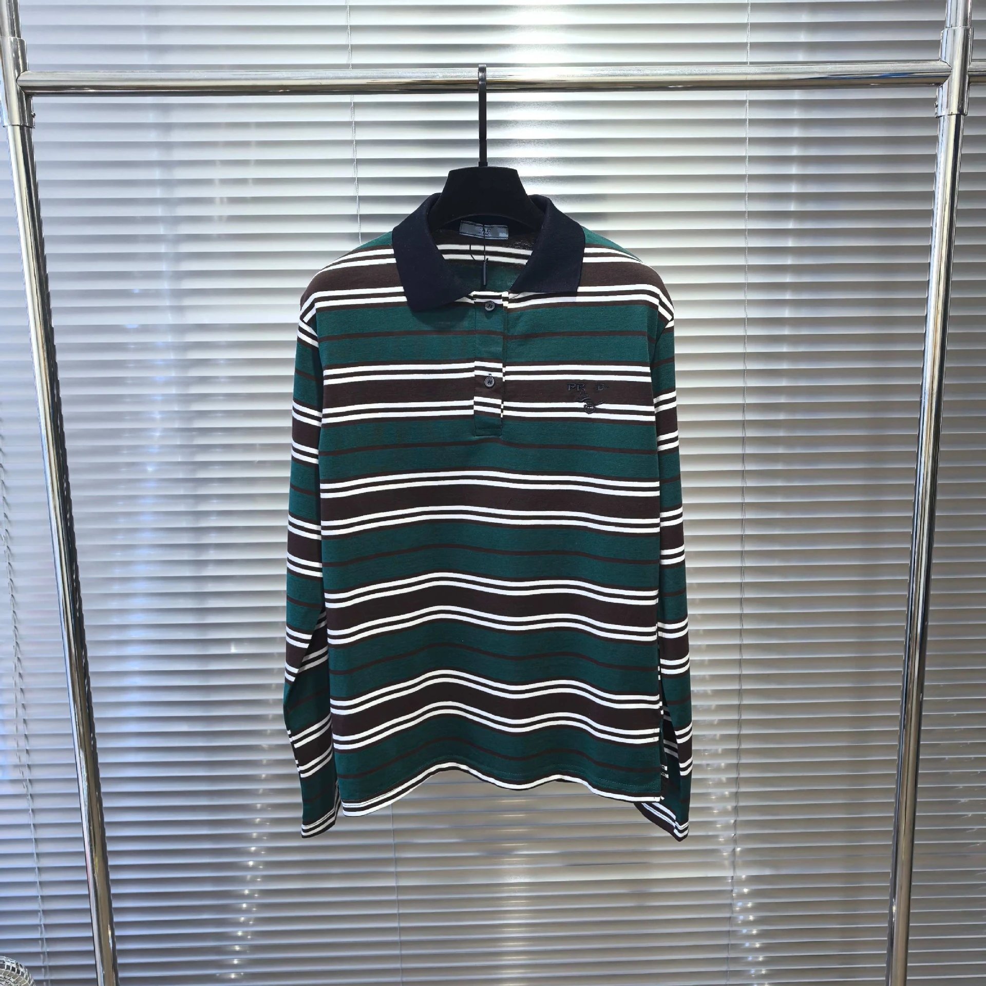 2025春季新款P家刺绣字母polo衫条纹翻领长袖上衣男女