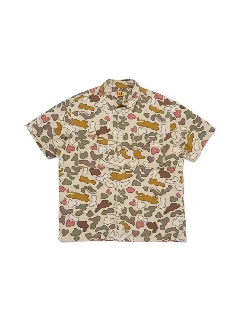 2025夏季human 迷彩印花衬衫复古日系通勤宽松休闲款衬衣男女款