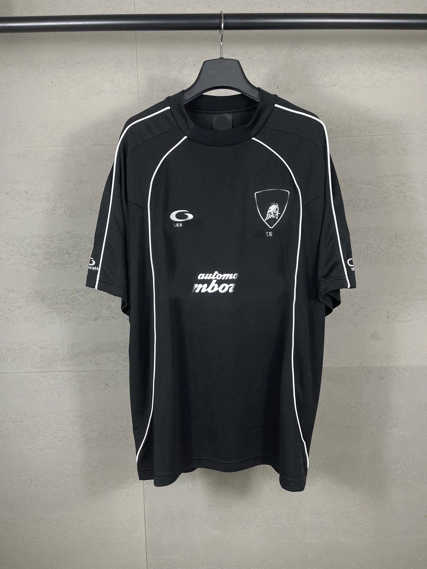 2025夏季巴黎联名兰博基尼球服多位拼接短袖水洗磨烂做旧半袖t